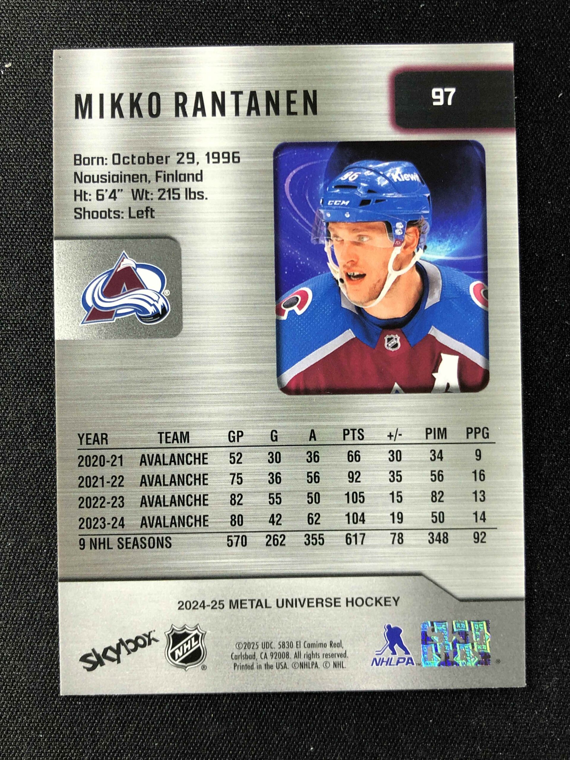 Sběratelská karta 2024/2025 Upper Deck Skybox Metal Universe Base 97 Mikko Rantanen
