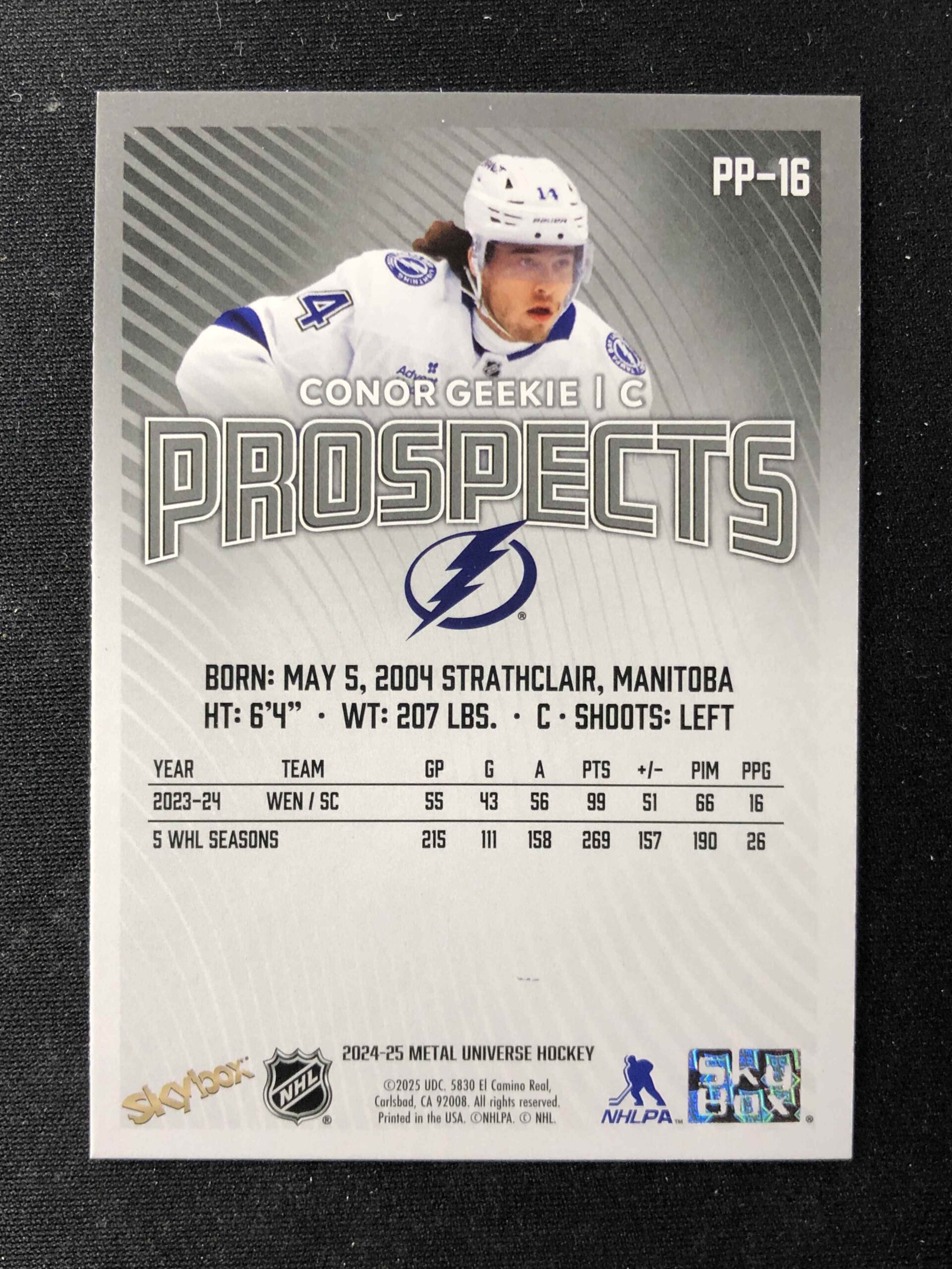2024/2025 Upper Deck Skybox Metal Universe Prospects PP-16 Conor Geekie Inzert