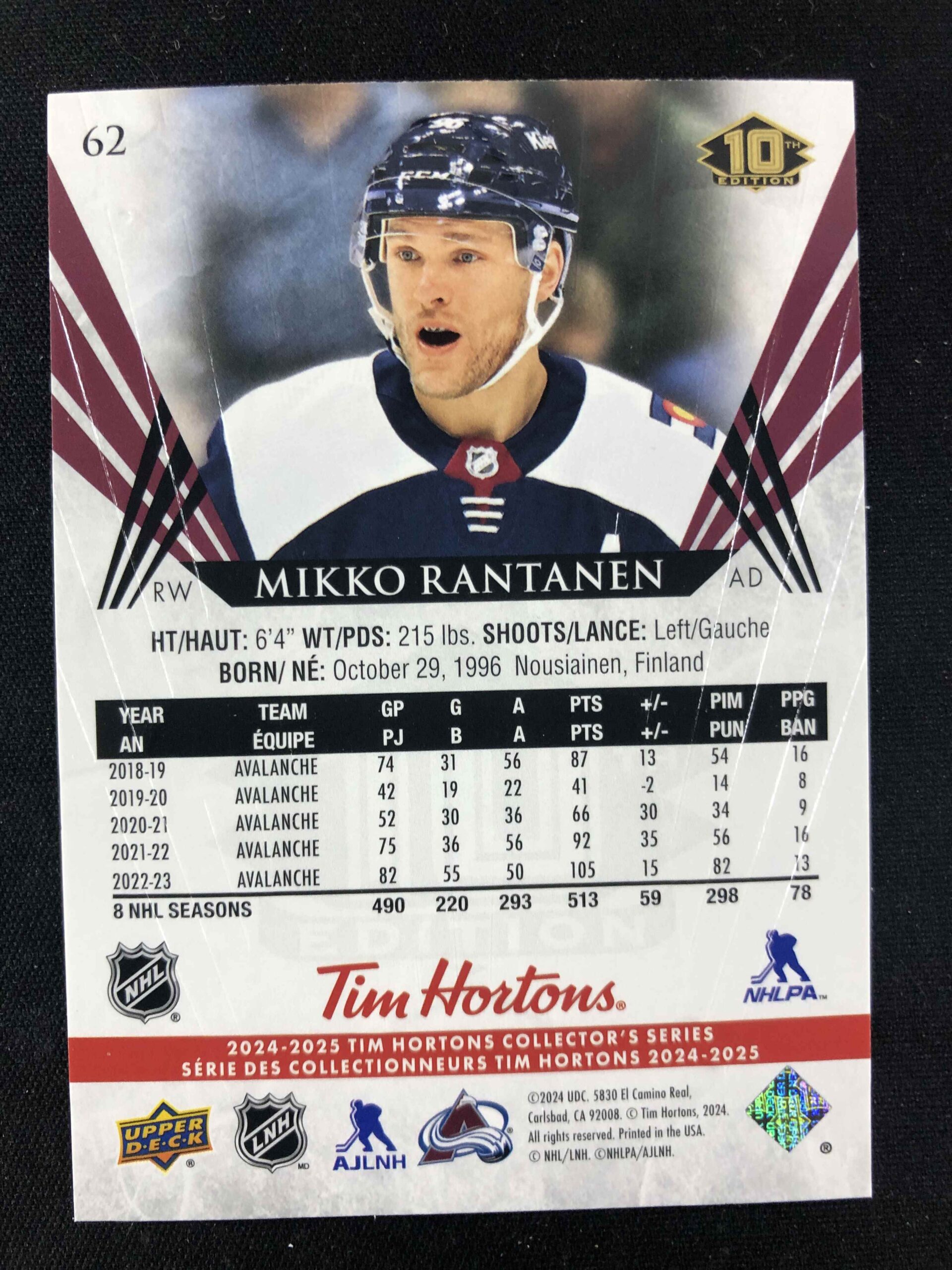 Sběratelská karta 2024/2025 Upper Deck Tim Hortons Base 62 Mikko Rantanen