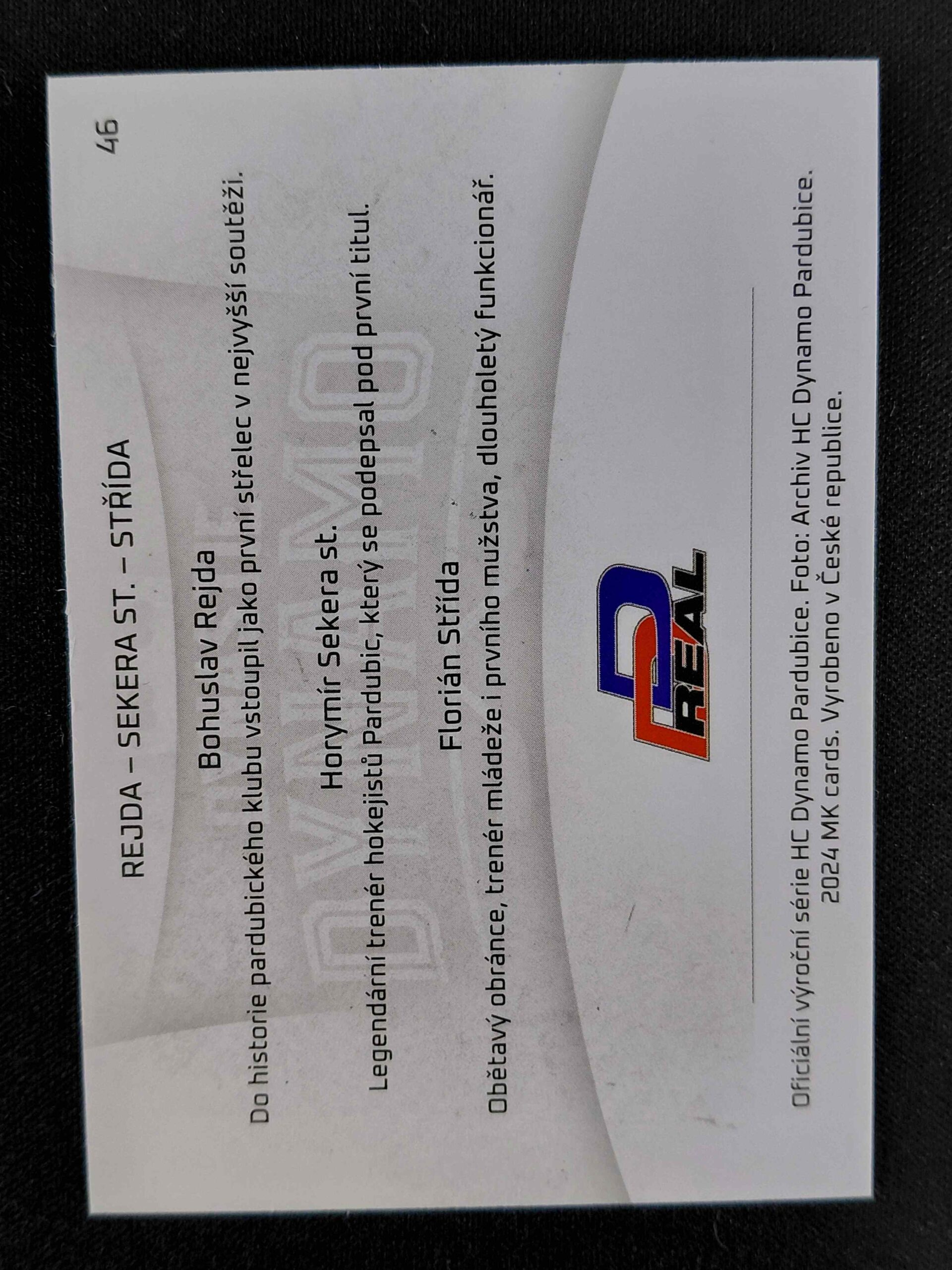 Sběratelská karta 2024 Moje Kartičky Dynamo 100 DD Trios 46 Rejda | Sekera | Střída