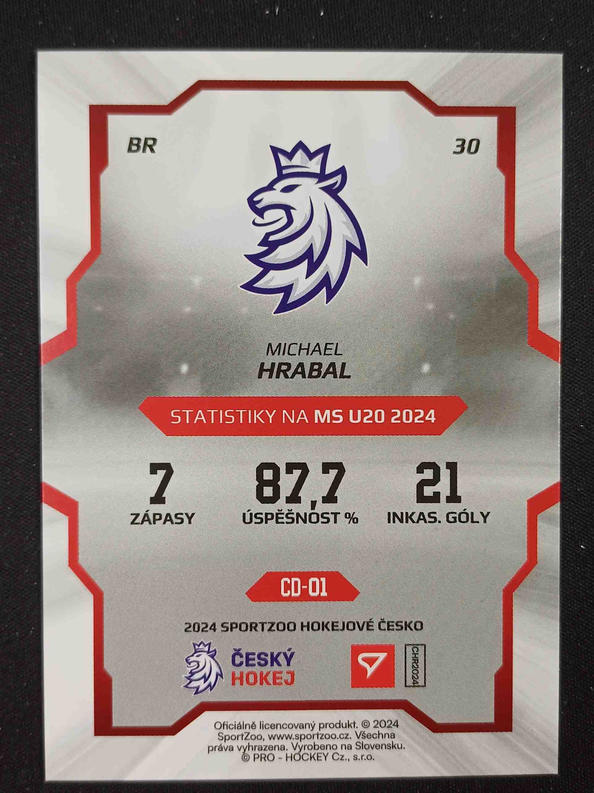 Sběratelská karta 2024 Sportzoo Hokejové Česko U20 CD-01 Michael Hrabal Inzert