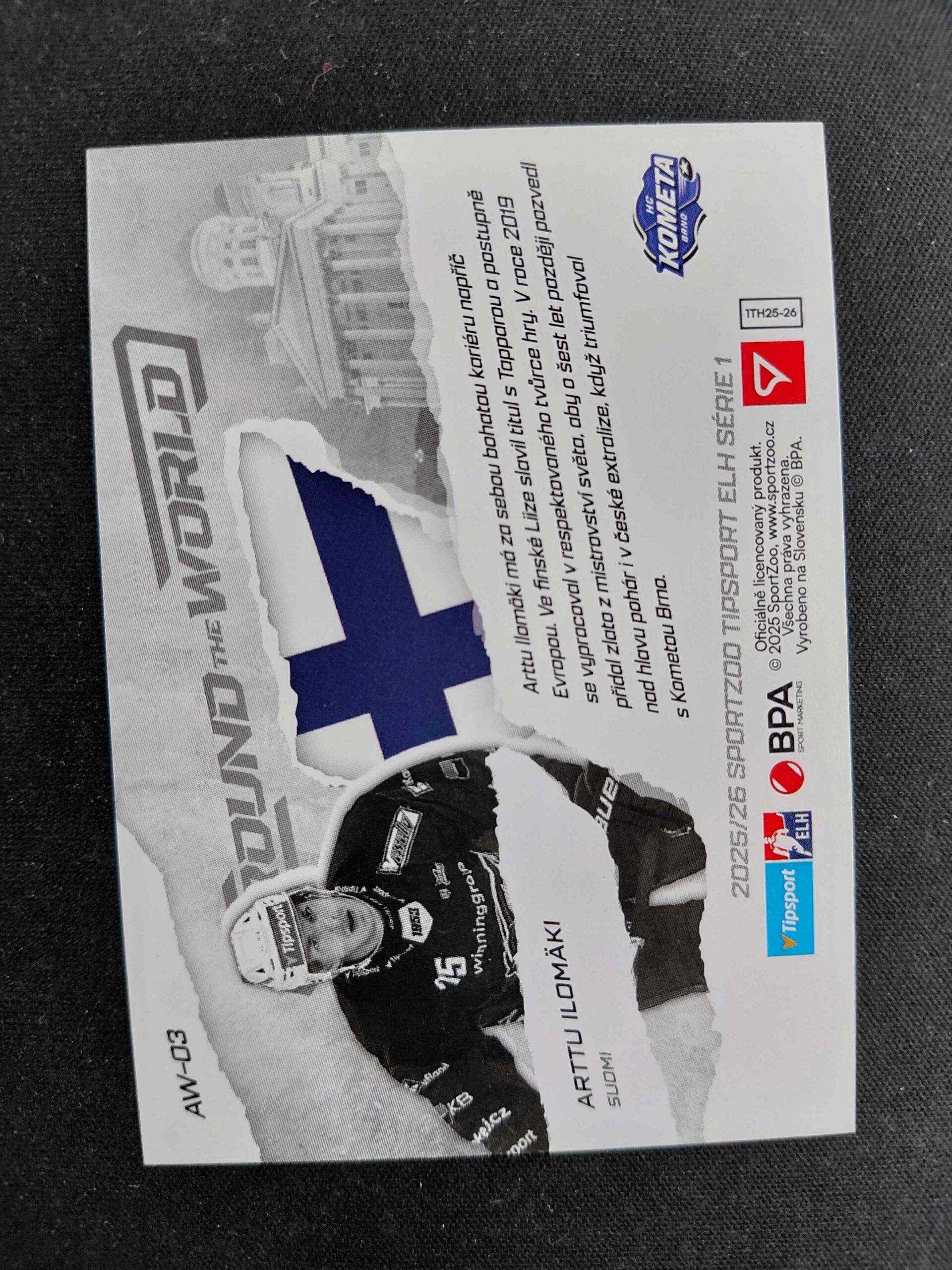 Sběratelská karta 2025/2026 Sportzoo Serie 1 Around the World AW-03 Arttu Ilomäki Inzert