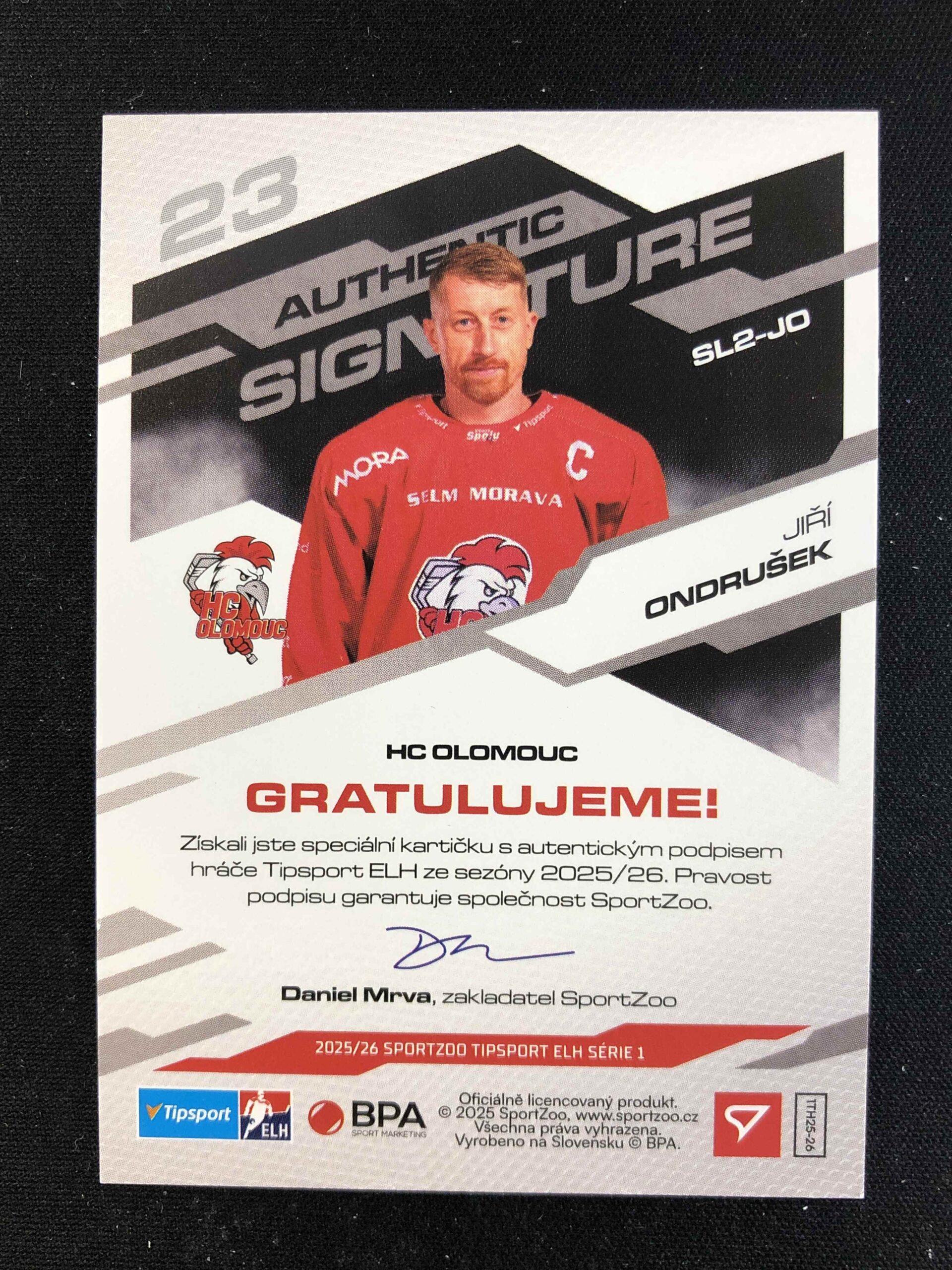 Sběratelská karta 2025/2026 Sportzoo Serie 1 Authentic Signature Level 2 SL2-JO Jiří Ondrušek AUTO 54/69