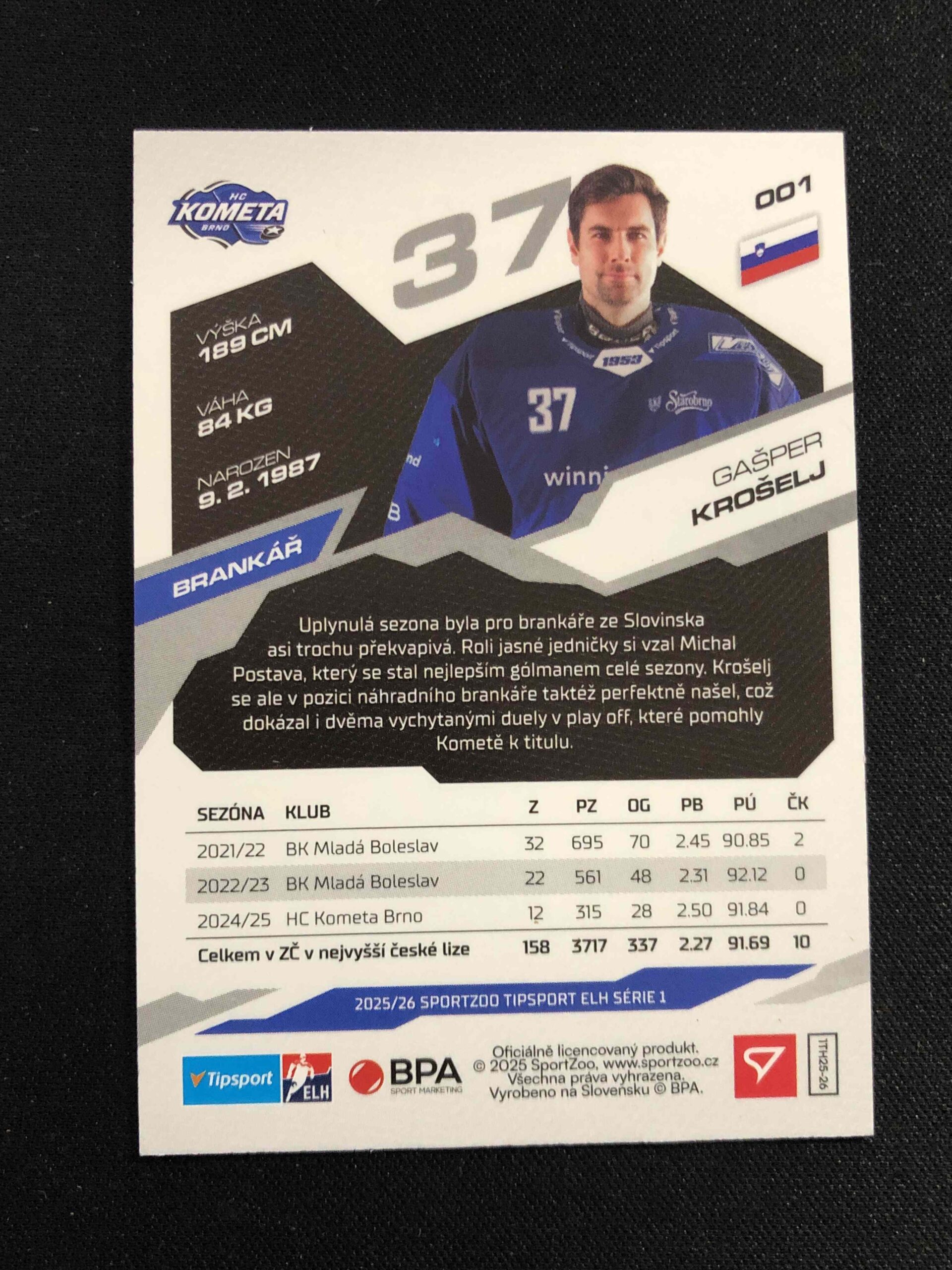 Sběratelská karta 2025/2026 Sportzoo Serie 1 Azure Blue 1 Gašper Krošelj Paralel