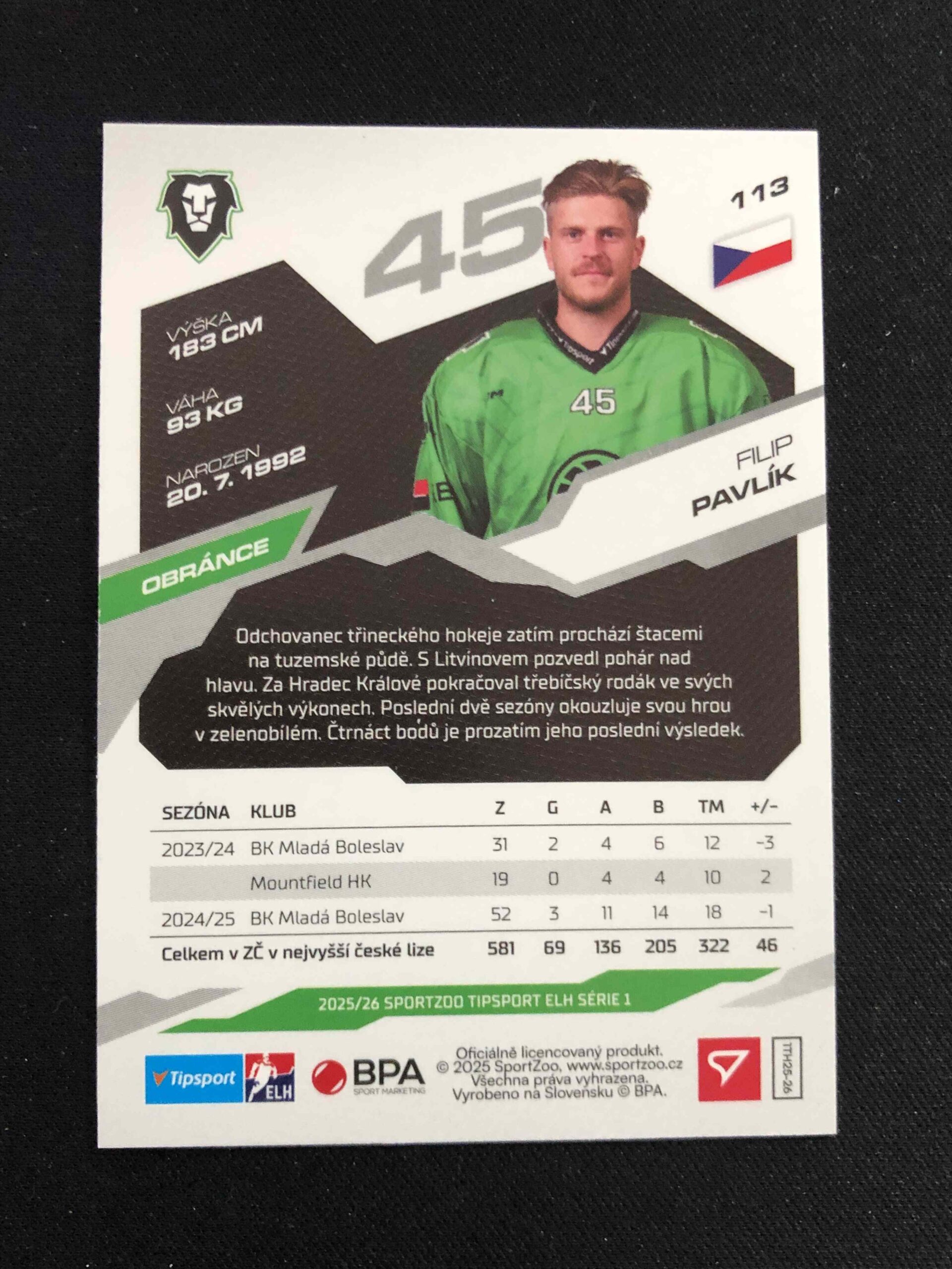 Sběratelská karta 2025/2026 Sportzoo Serie 1 Azure Blue 113 Filip Pavlík Paralel