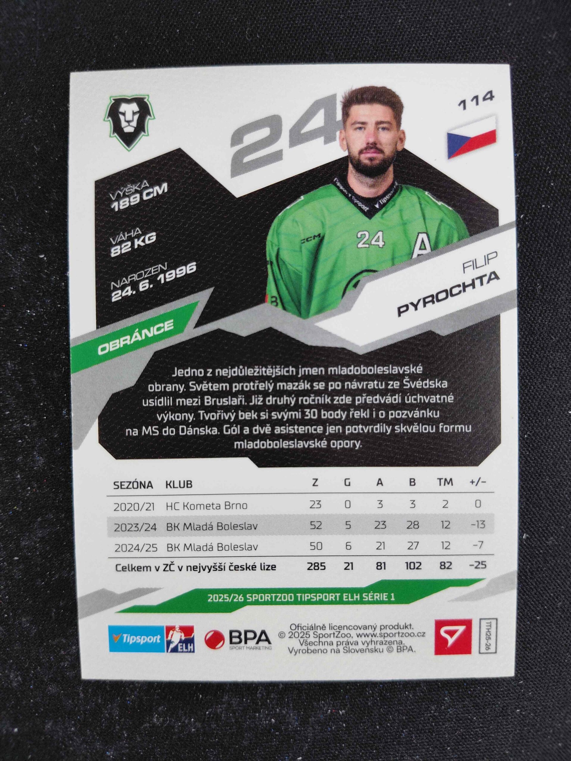 Sběratelská karta 2025/2026 Sportzoo Serie 1 Azure Blue 114 Filip Pyrochta Paralel