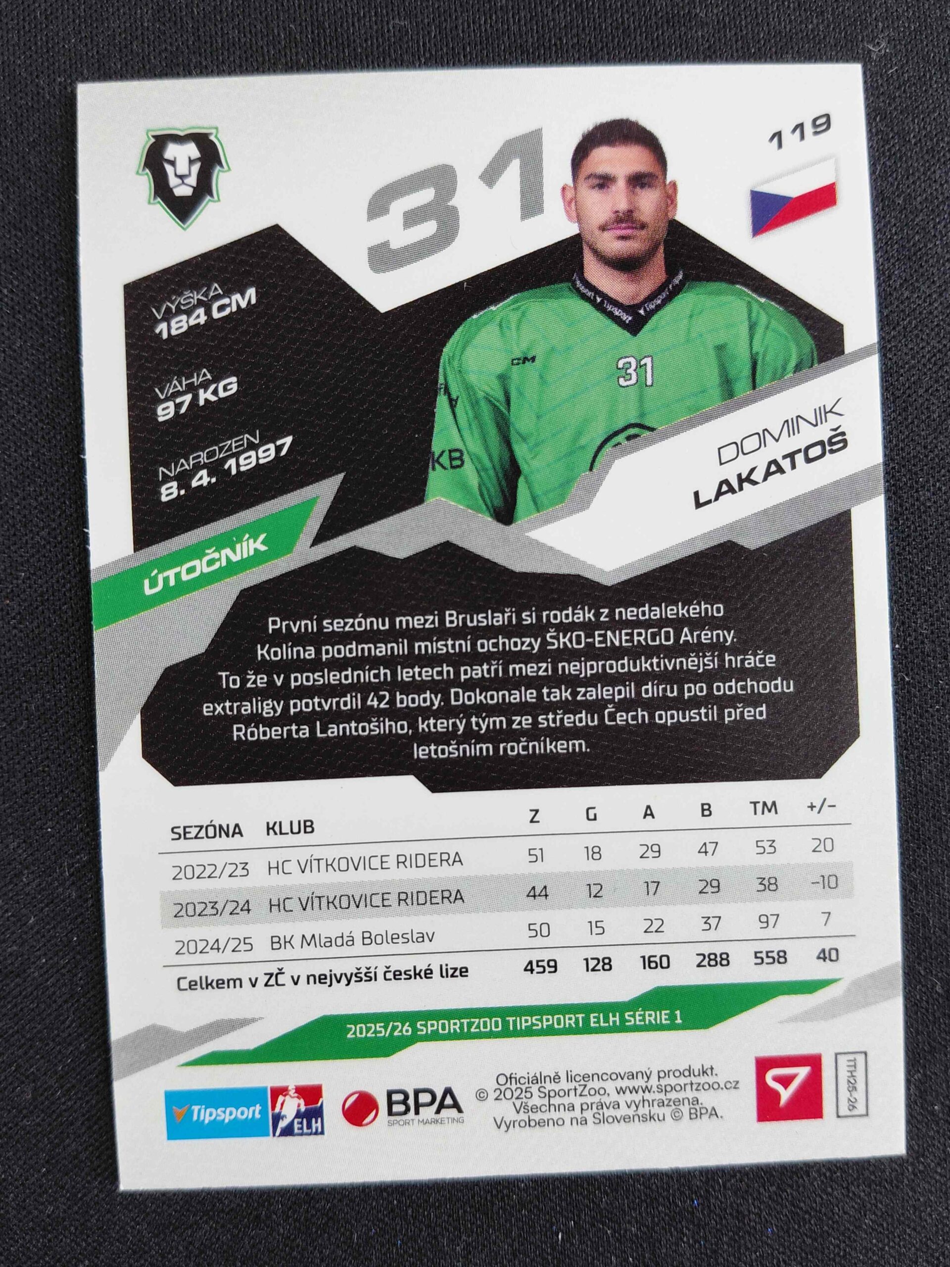 Sběratelská karta 2025/2026 Sportzoo Serie 1 Azure Blue 119 Dominik Lakatoš Paralel