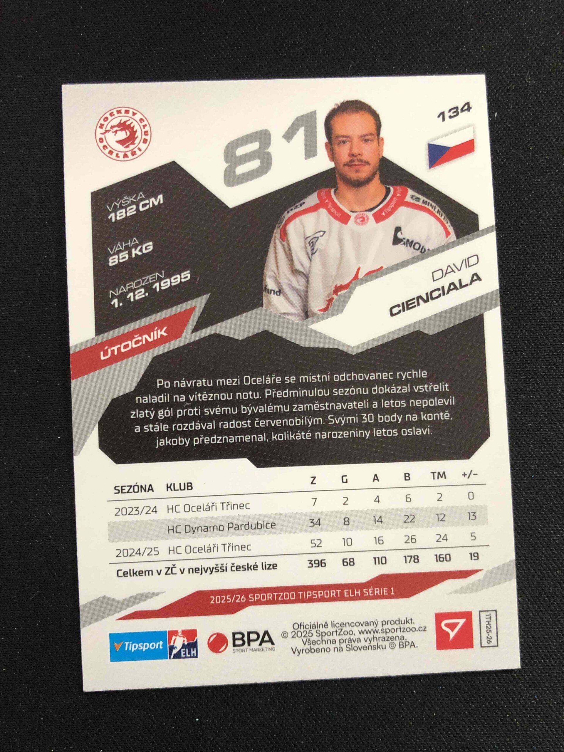 Sběratelská karta 2025/2026 Sportzoo Serie 1 Azure Blue 134 David Cienciala Paralel