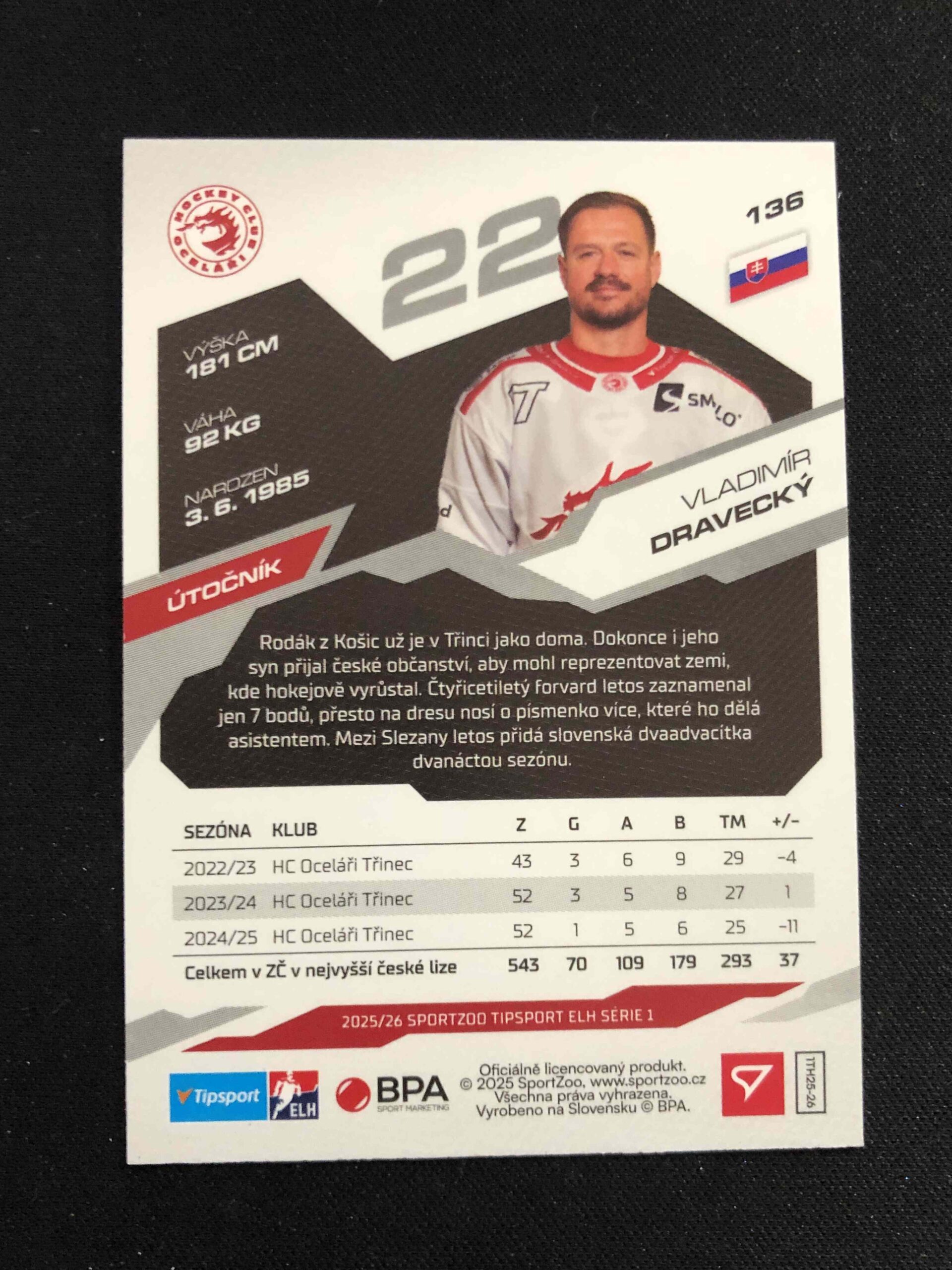 Sběratelská karta 2025/2026 Sportzoo Serie 1 Azure Blue 136 Vladimír Dravecký Paralel