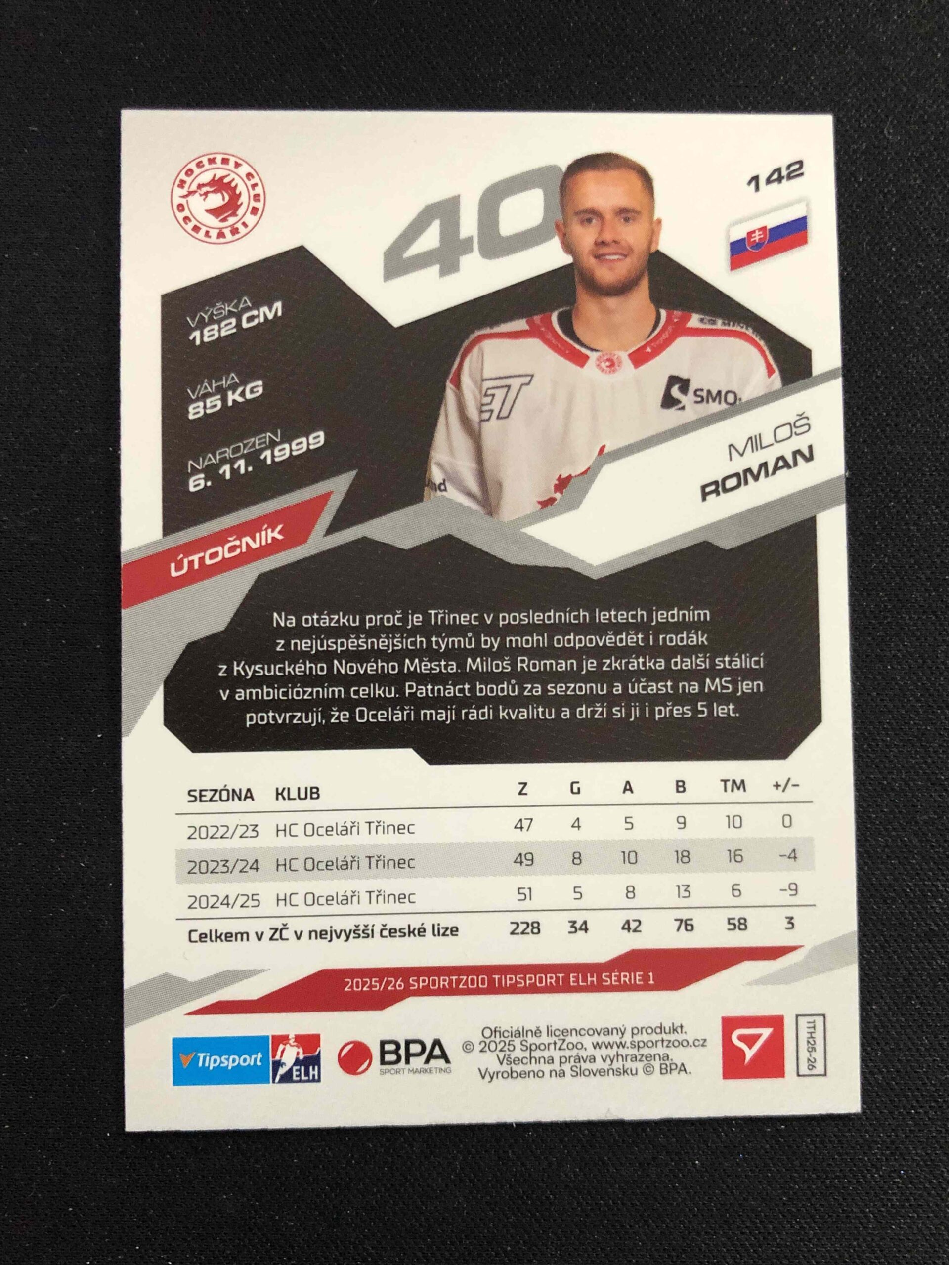 Sběratelská karta 2025/2026 Sportzoo Serie 1 Azure Blue 142 Miloš Roman Paralel
