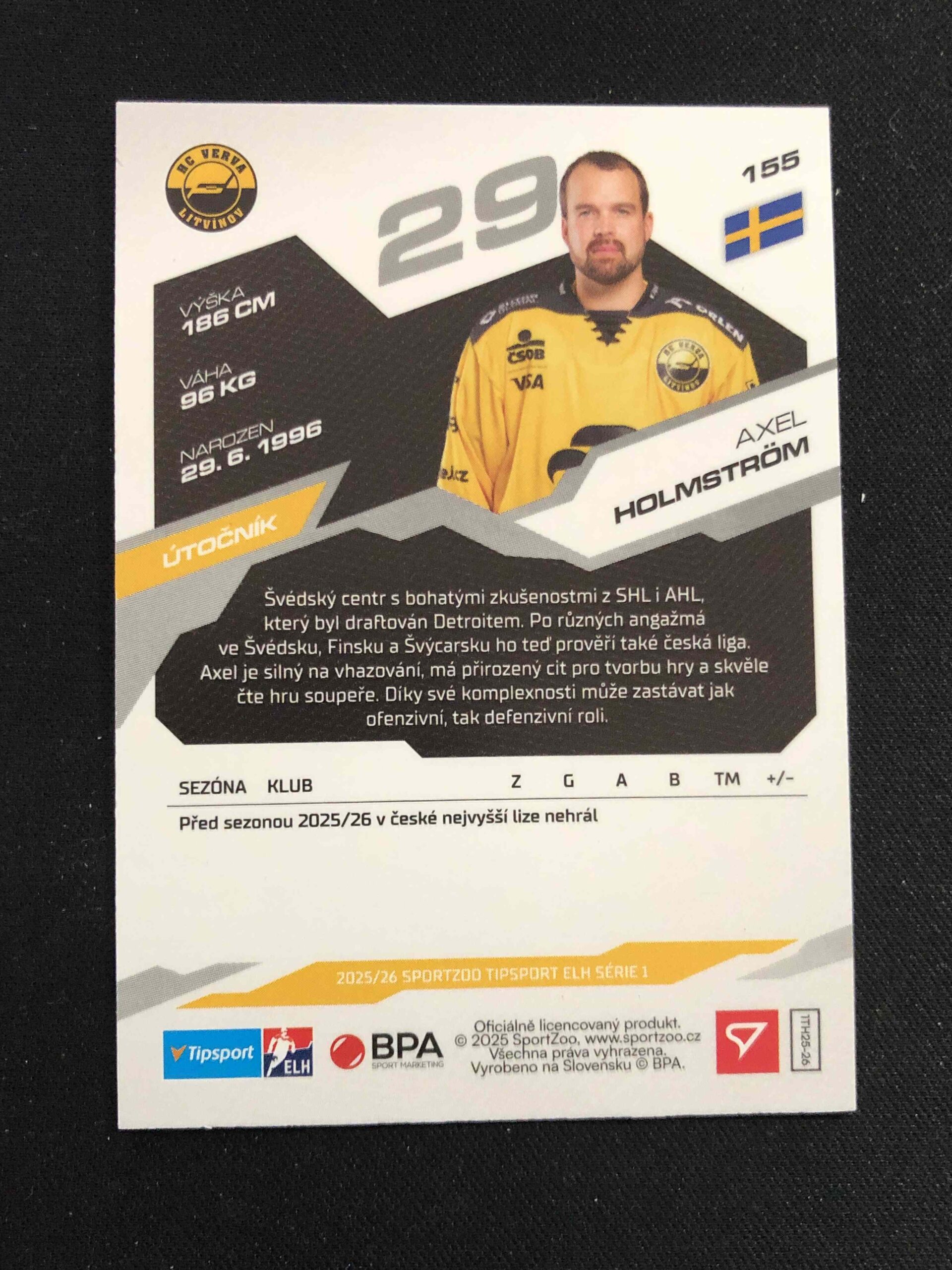 Sběratelská karta 2025/2026 Sportzoo Serie 1 Azure Blue 155 Axel Holmström Paralel