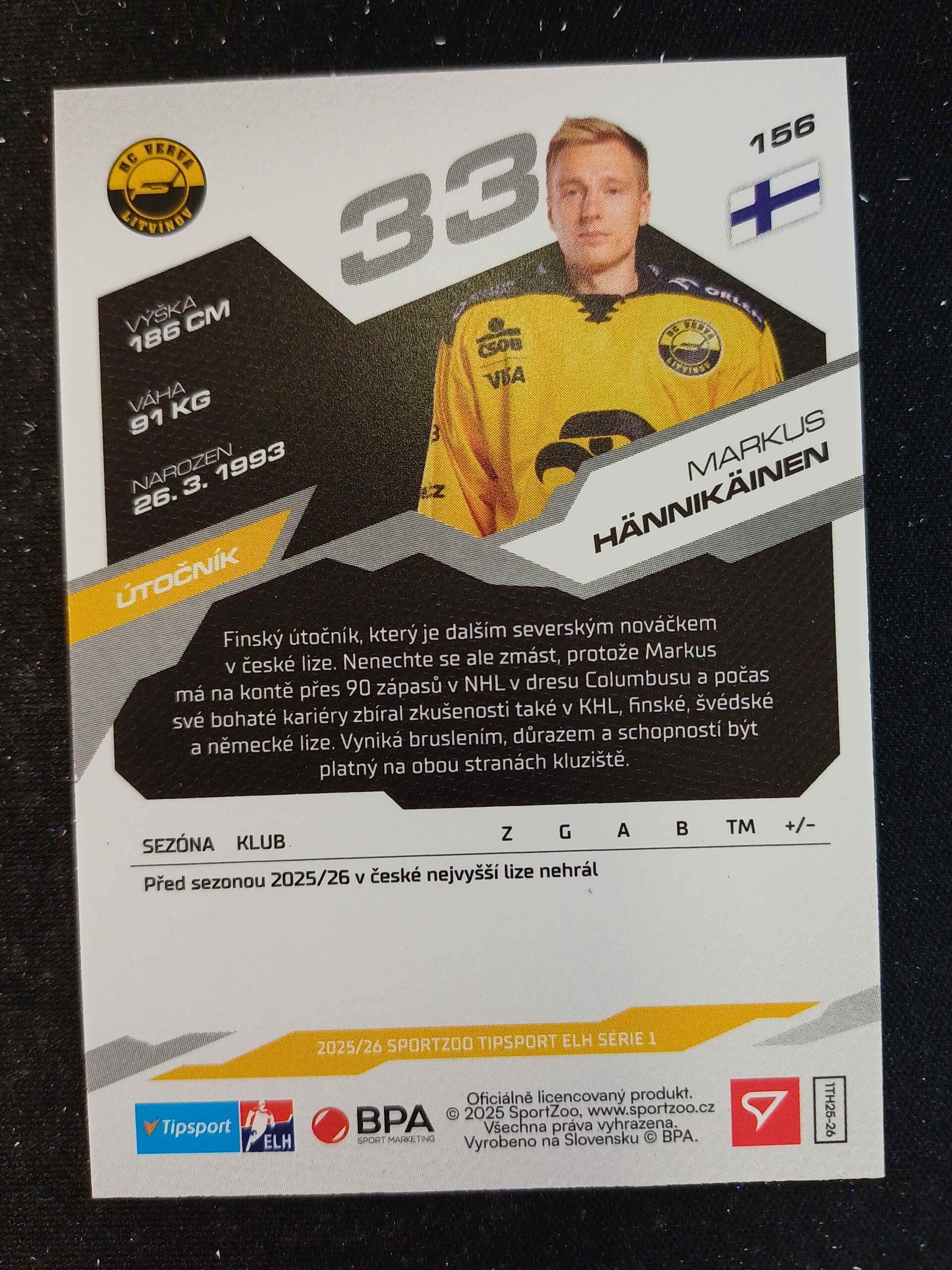 Sběratelská karta 2025/2026 Sportzoo Serie 1 Azure Blue 156 Markus Hännikäinen Paralel