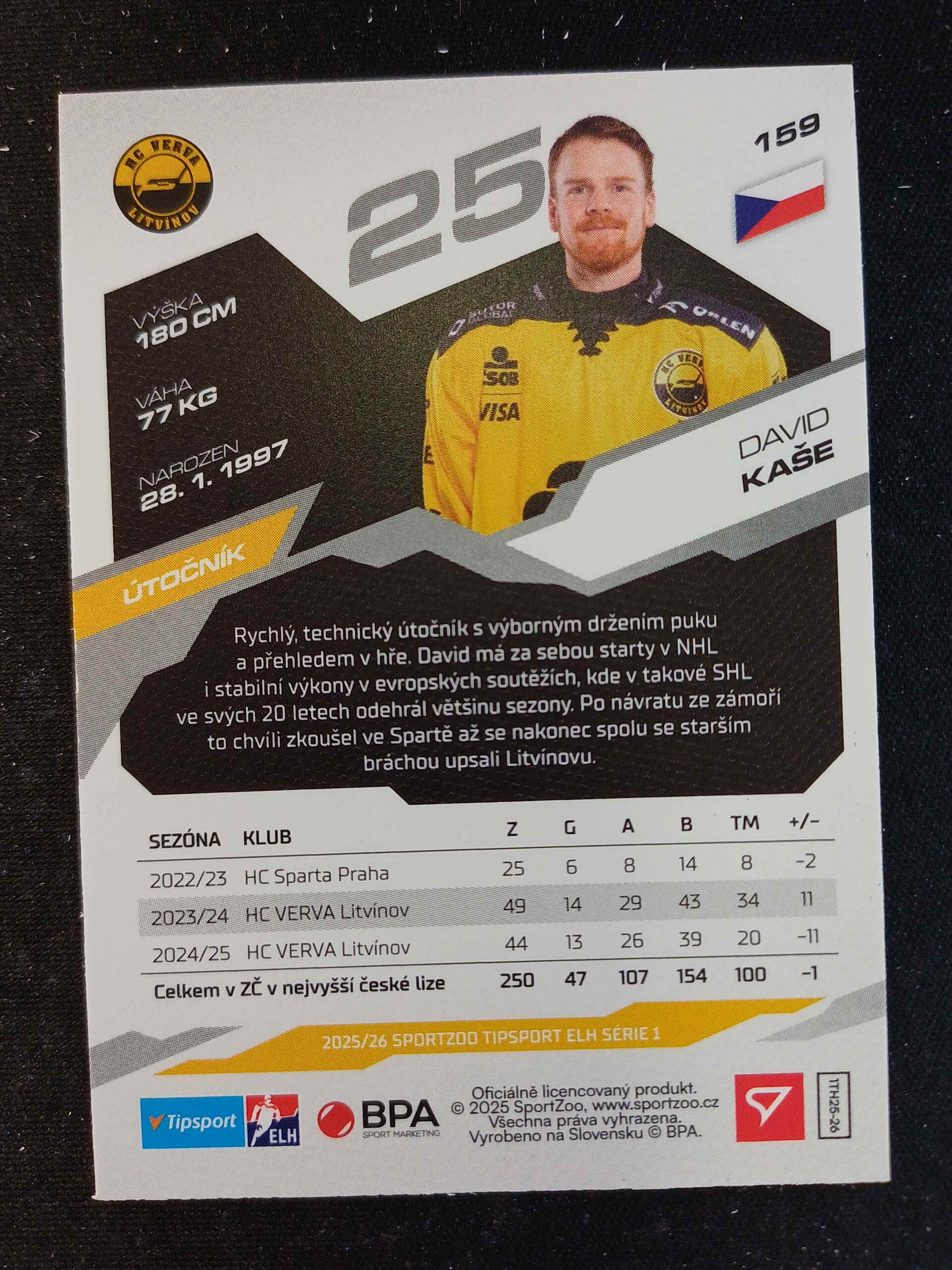 Sběratelská karta 2025/2026 Sportzoo Serie 1 Azure Blue 159 David Kaše Paralel