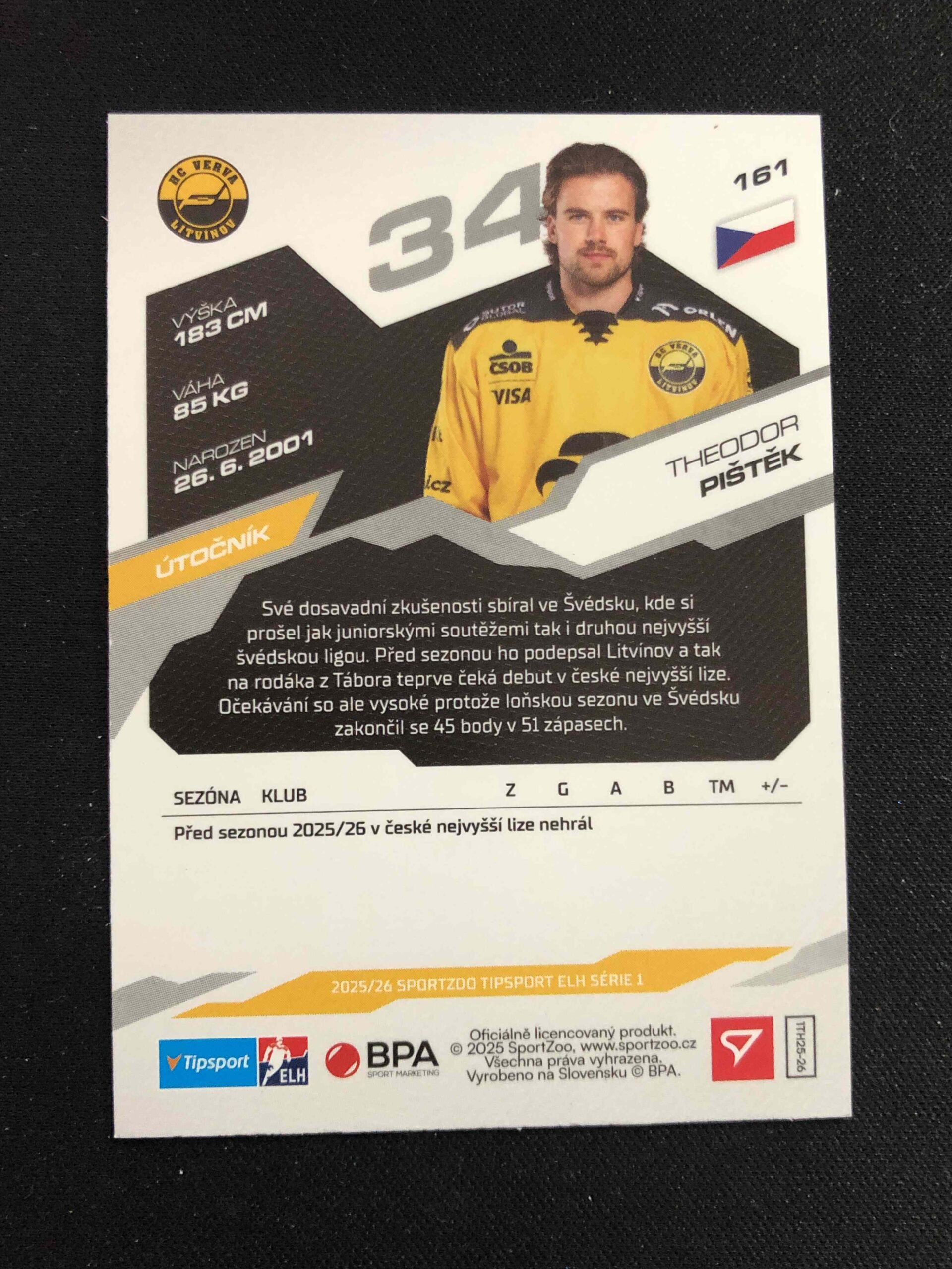 Sběratelská karta 2025/2026 Sportzoo Serie 1 Azure Blue 161 Theodor Pištěk Paralel