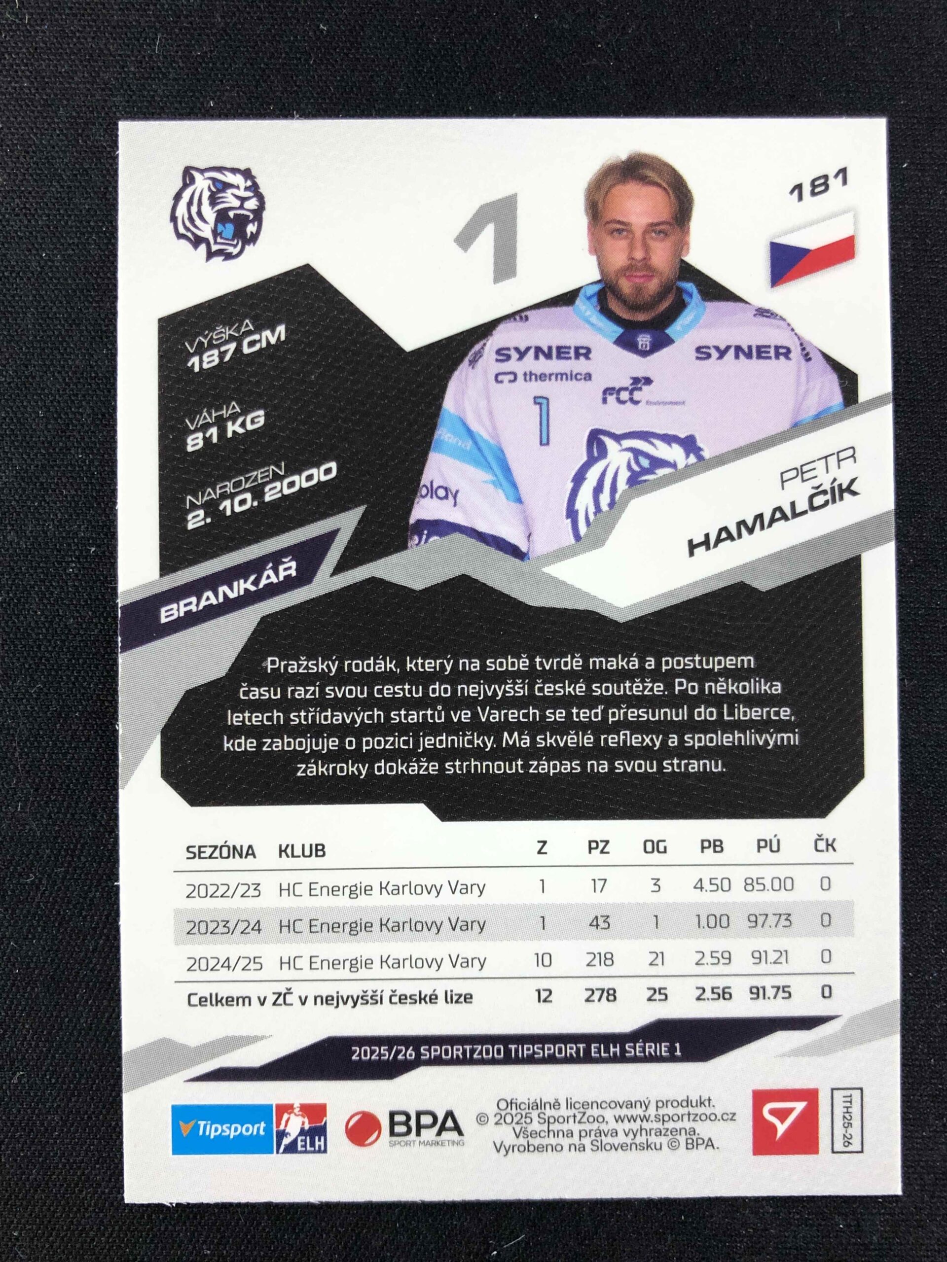 Sběratelská karta 2025/2026 Sportzoo Serie 1 Azure Blue 181 Petr Hamalčík Paralel