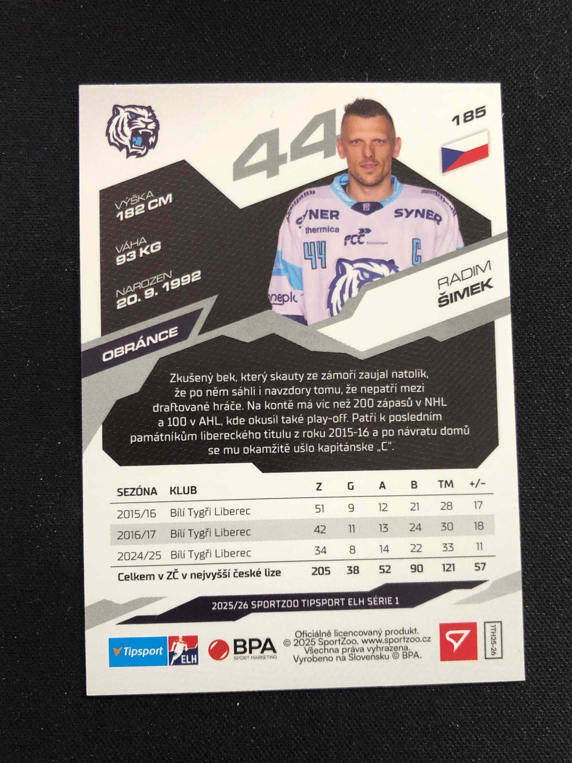 Sběratelská karta 2025/2026 Sportzoo Serie 1 Azure Blue 185 Radim Šimek Paralel