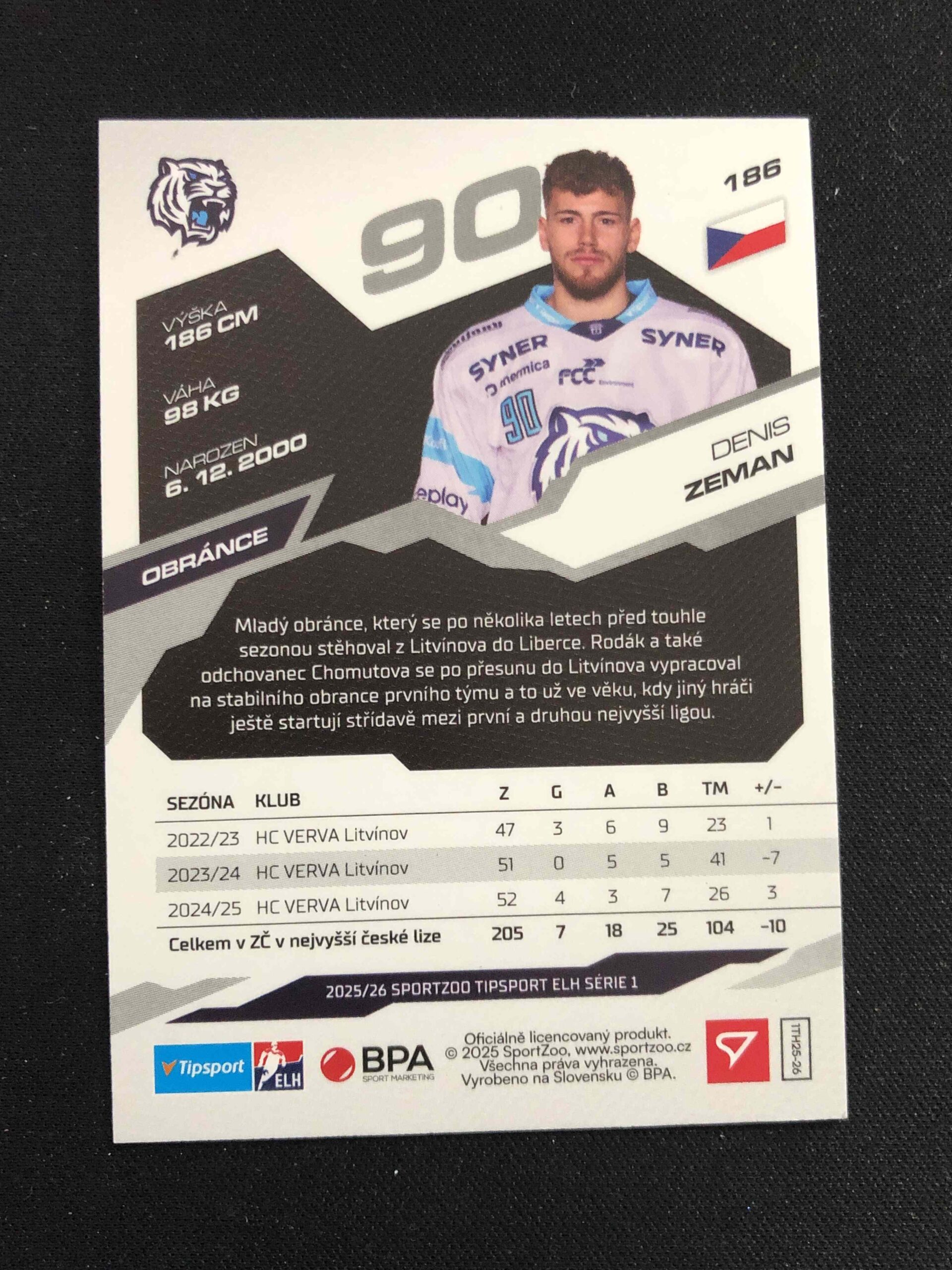 Sběratelská karta 2025/2026 Sportzoo Serie 1 Azure Blue 186 Denis Zeman Paralel