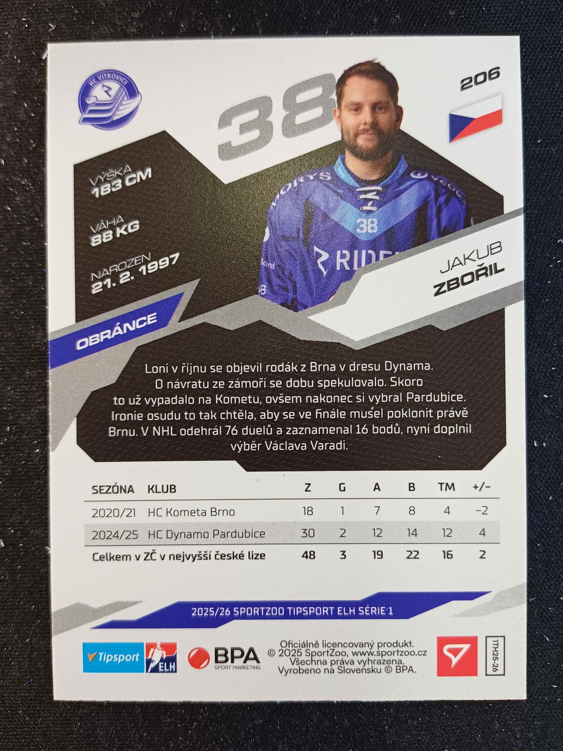 Sběratelská karta 2025/2026 Sportzoo Serie 1 Azure Blue 206 Jakub Zbořil Paralel