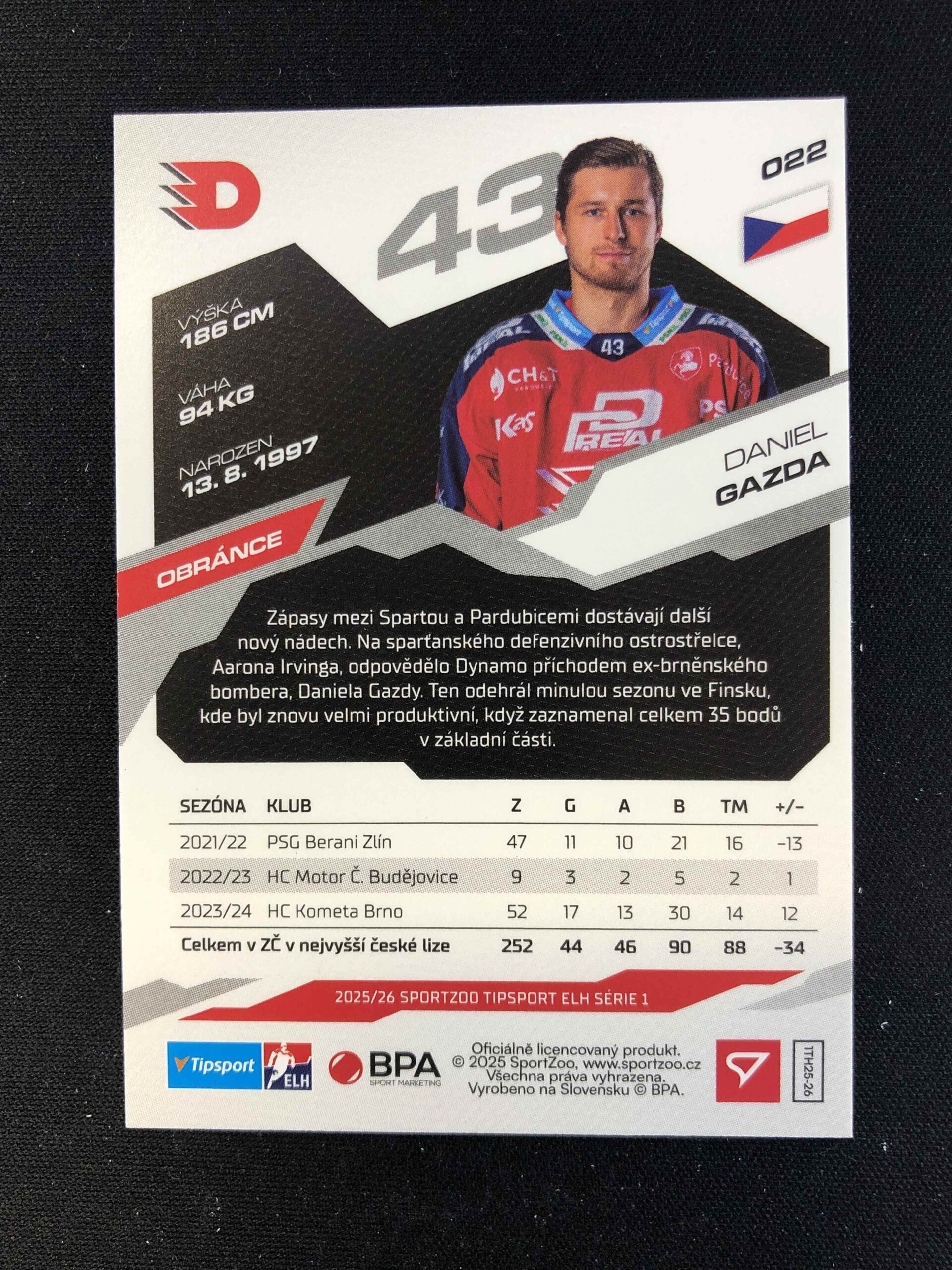 Sběratelská karta 2025/2026 Sportzoo Serie 1 Azure Blue 22 Daniel Gazda Paralel