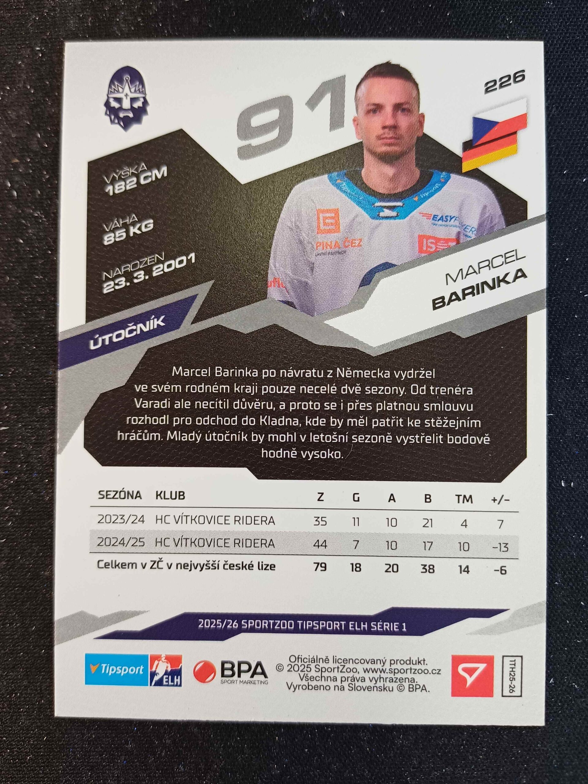 Sběratelská karta 2025/2026 Sportzoo Serie 1 Azure Blue 226 Marcel Barinka Paralel