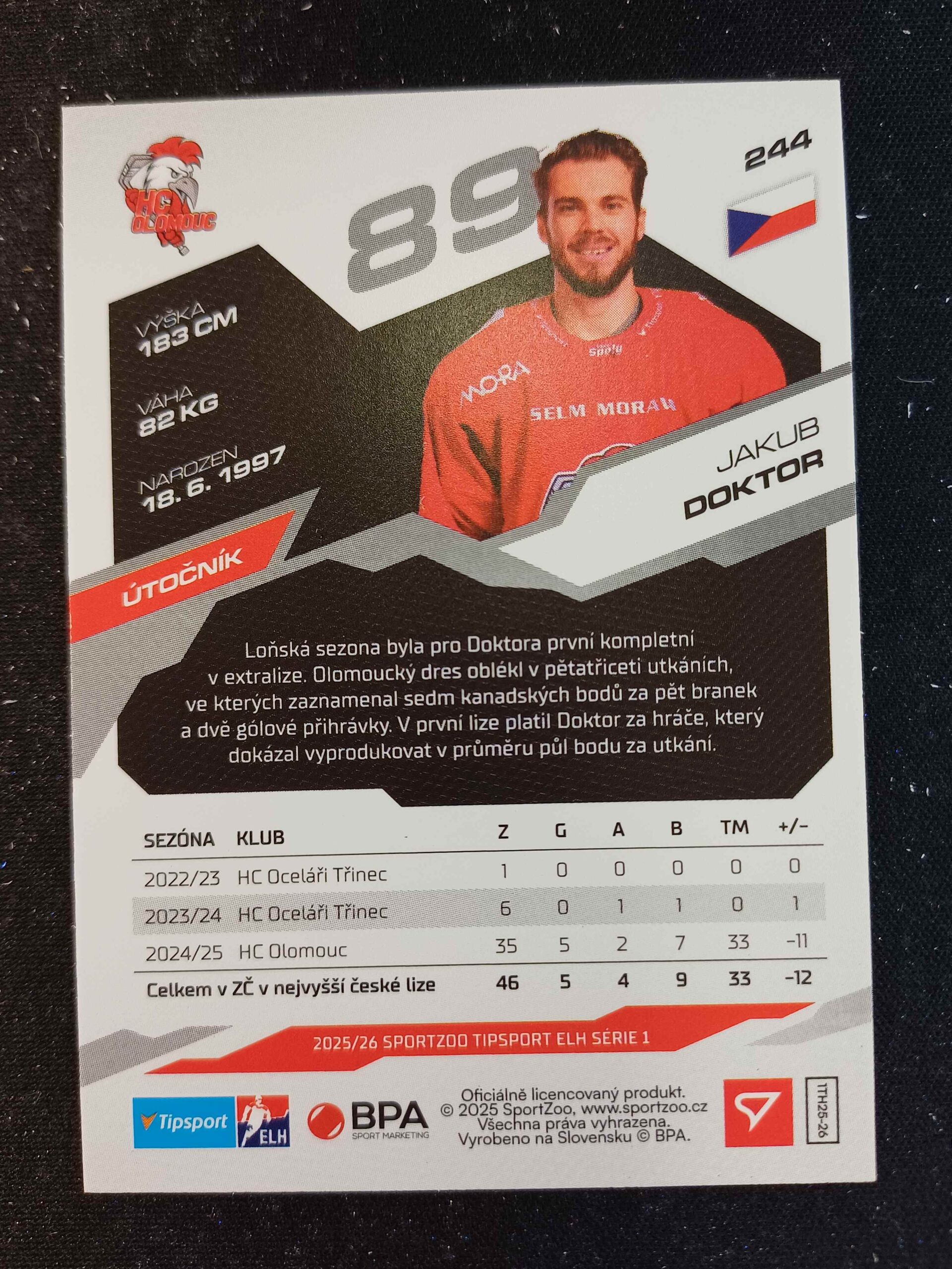 Sběratelská karta 2025/2026 Sportzoo Serie 1 Azure Blue 244 Jakub Doktor Paralel