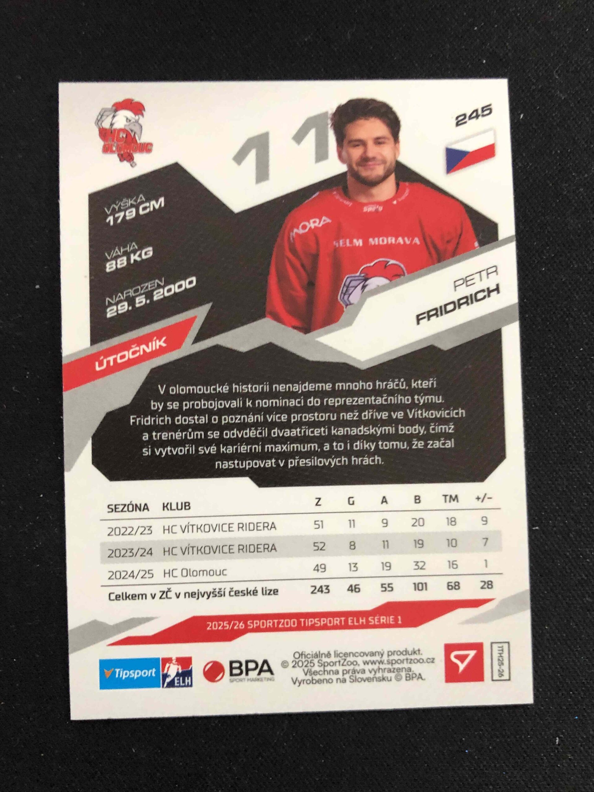 Sběratelská karta 2025/2026 Sportzoo Serie 1 Azure Blue 245 Petr Fridrich Paralel