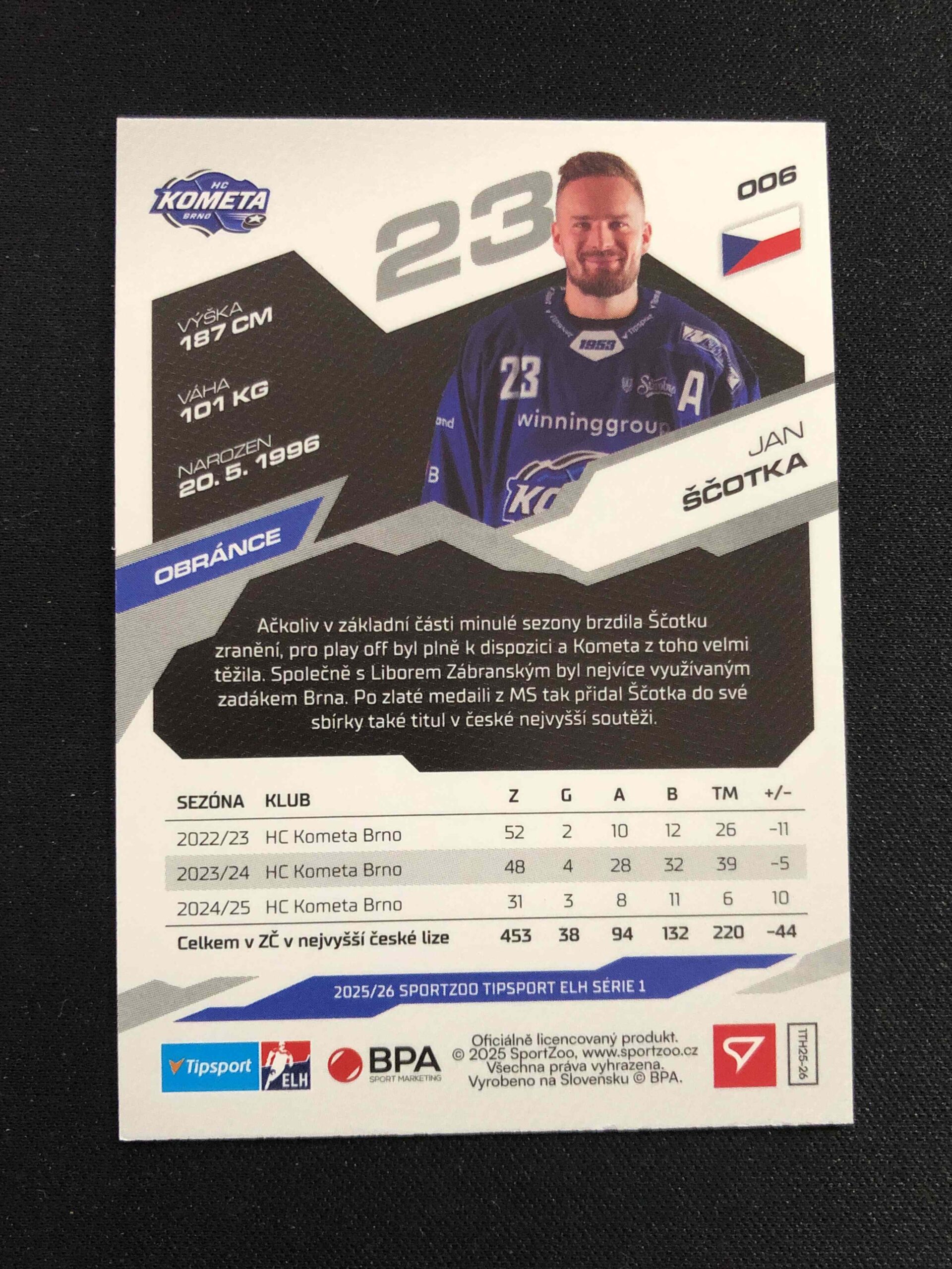 Sběratelská karta 2025/2026 Sportzoo Serie 1 Azure Blue 6 Jan Ščotka Paralel
