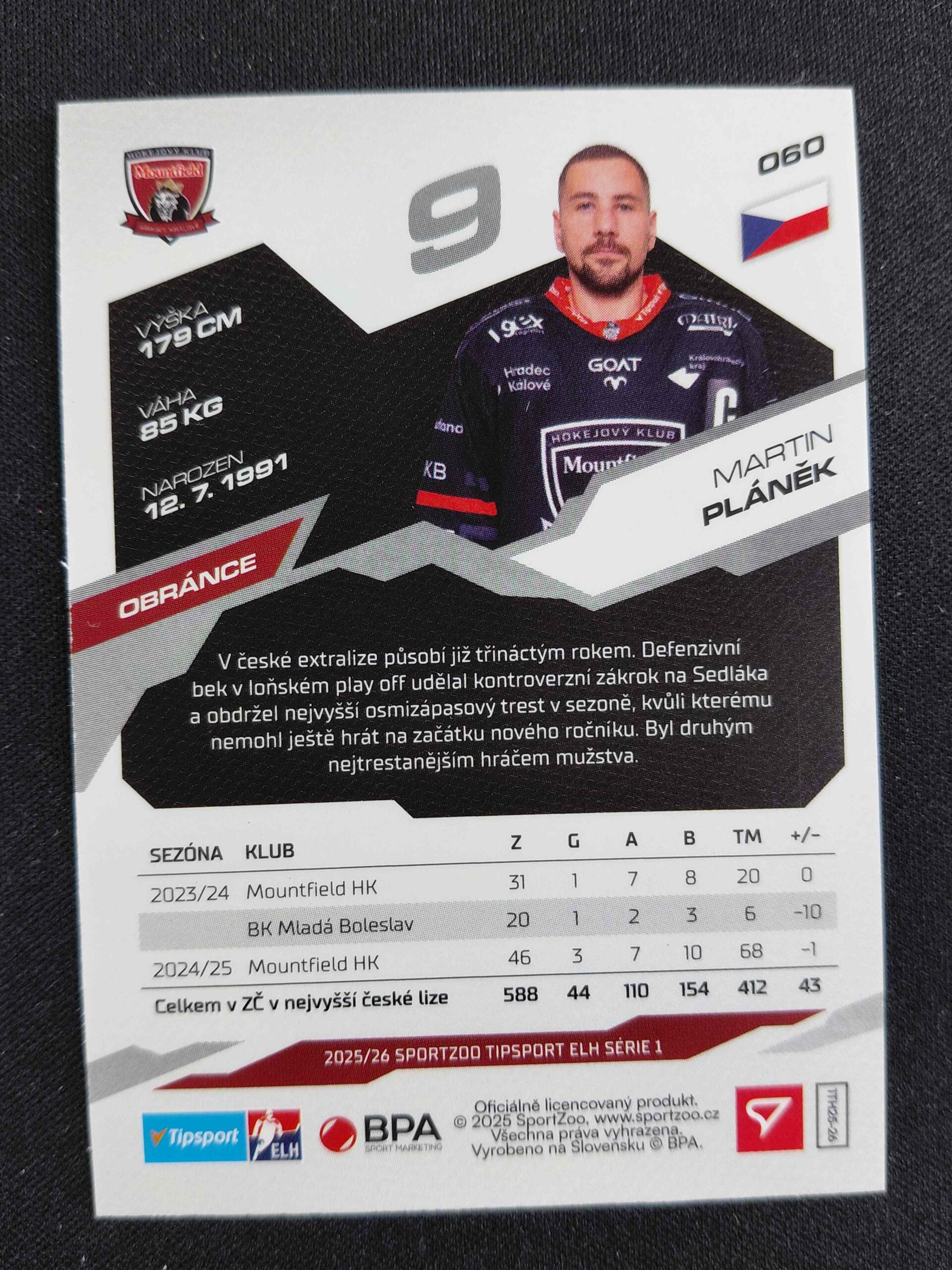Sběratelská karta 2025/2026 Sportzoo Serie 1 Azure Blue 60 Martin Pláněk Paralel