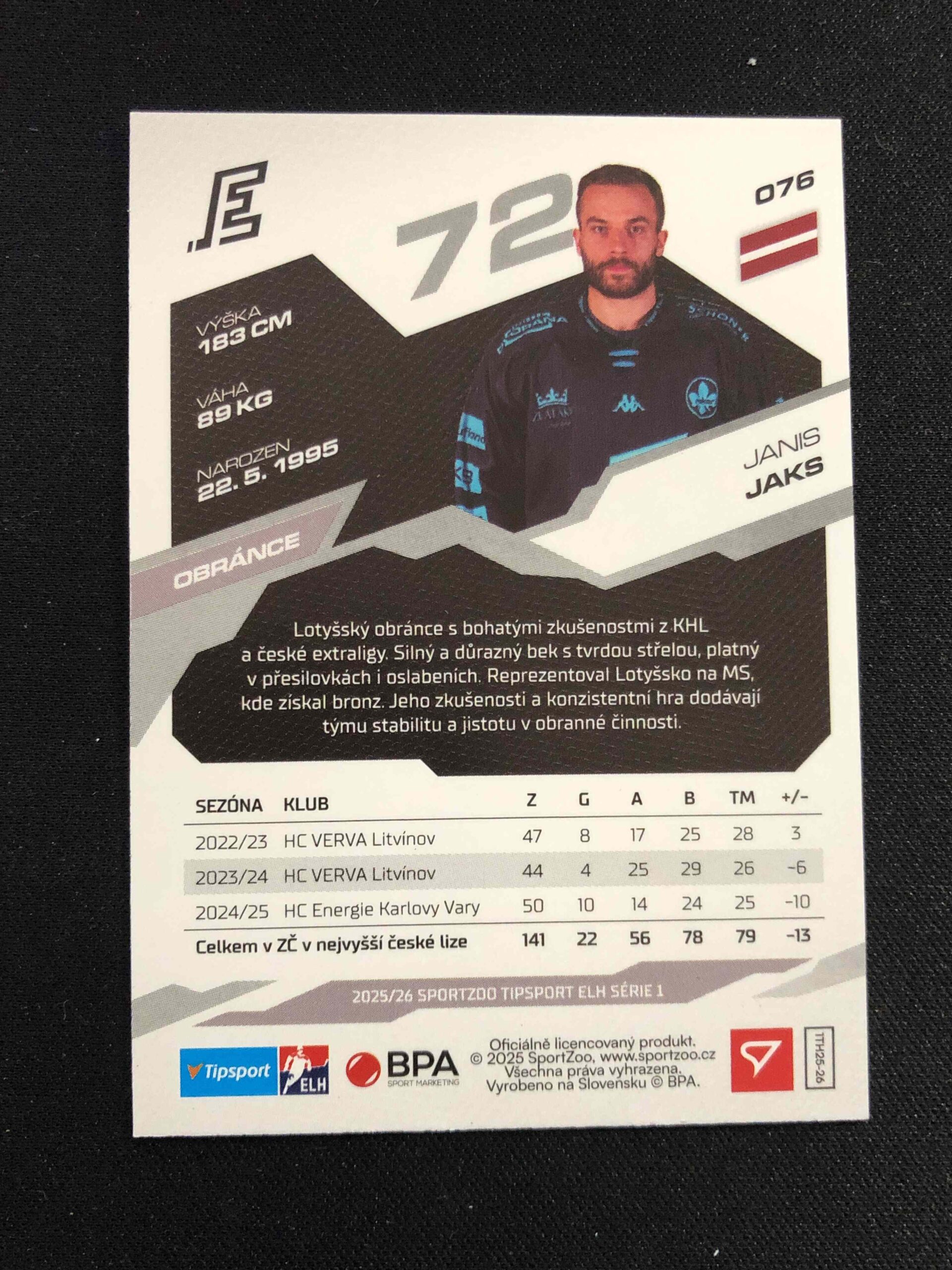 Sběratelská karta 2025/2026 Sportzoo Serie 1 Azure Blue 76 Janis Jaks Paralel