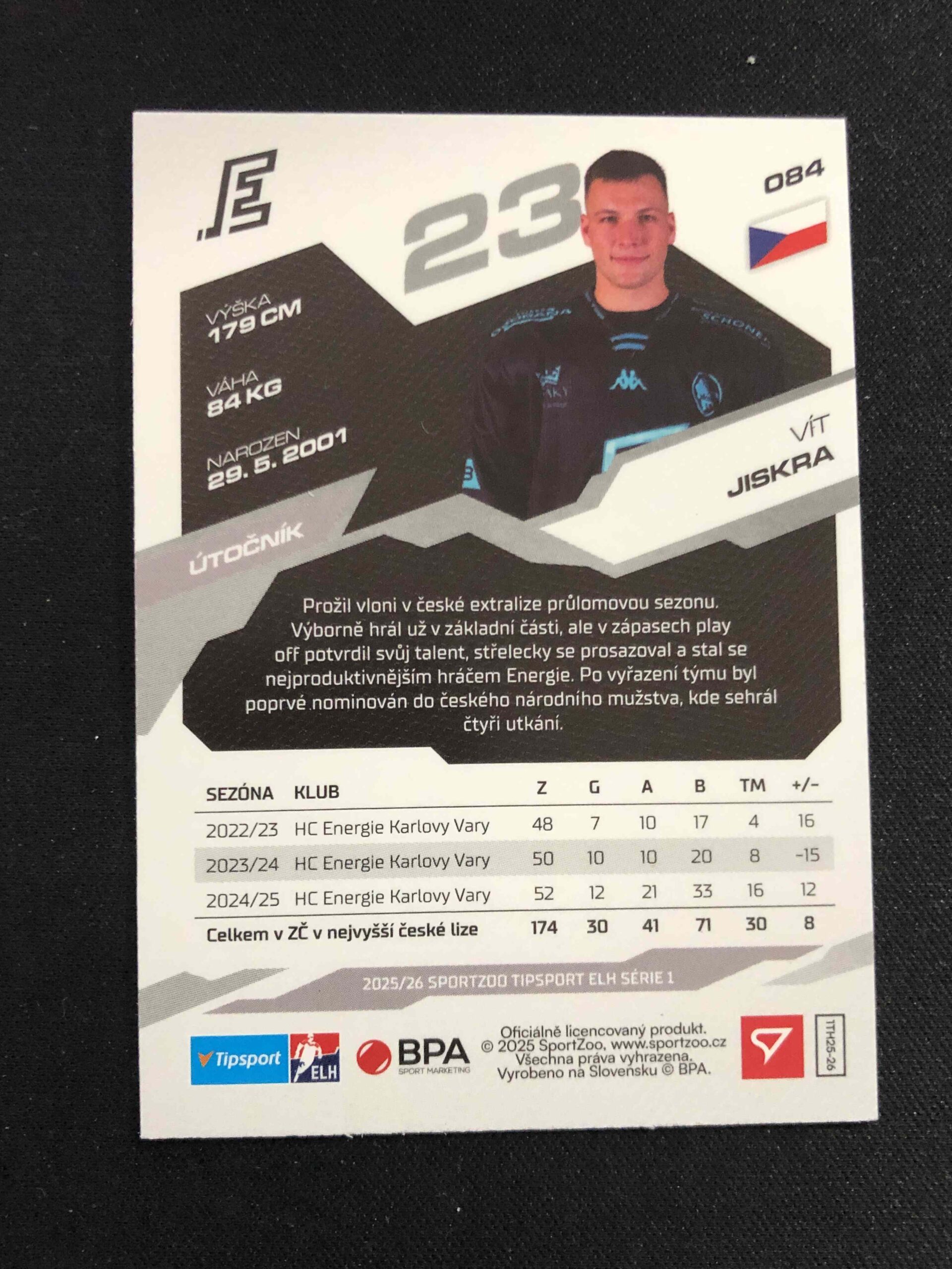 Sběratelská karta 2025/2026 Sportzoo Serie 1 Azure Blue 84 Vít Jiskra Paralel