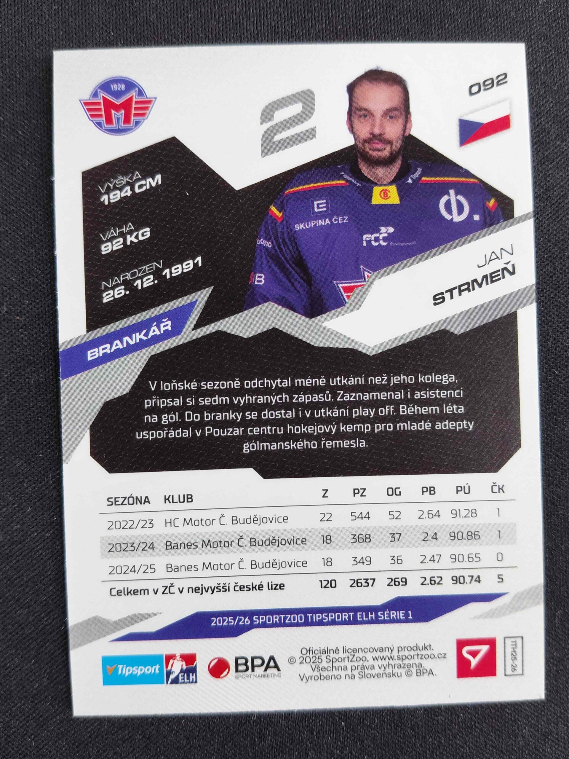 Sběratelská karta 2025/2026 Sportzoo Serie 1 Azure Blue 92 Jan Strmeň Paralel