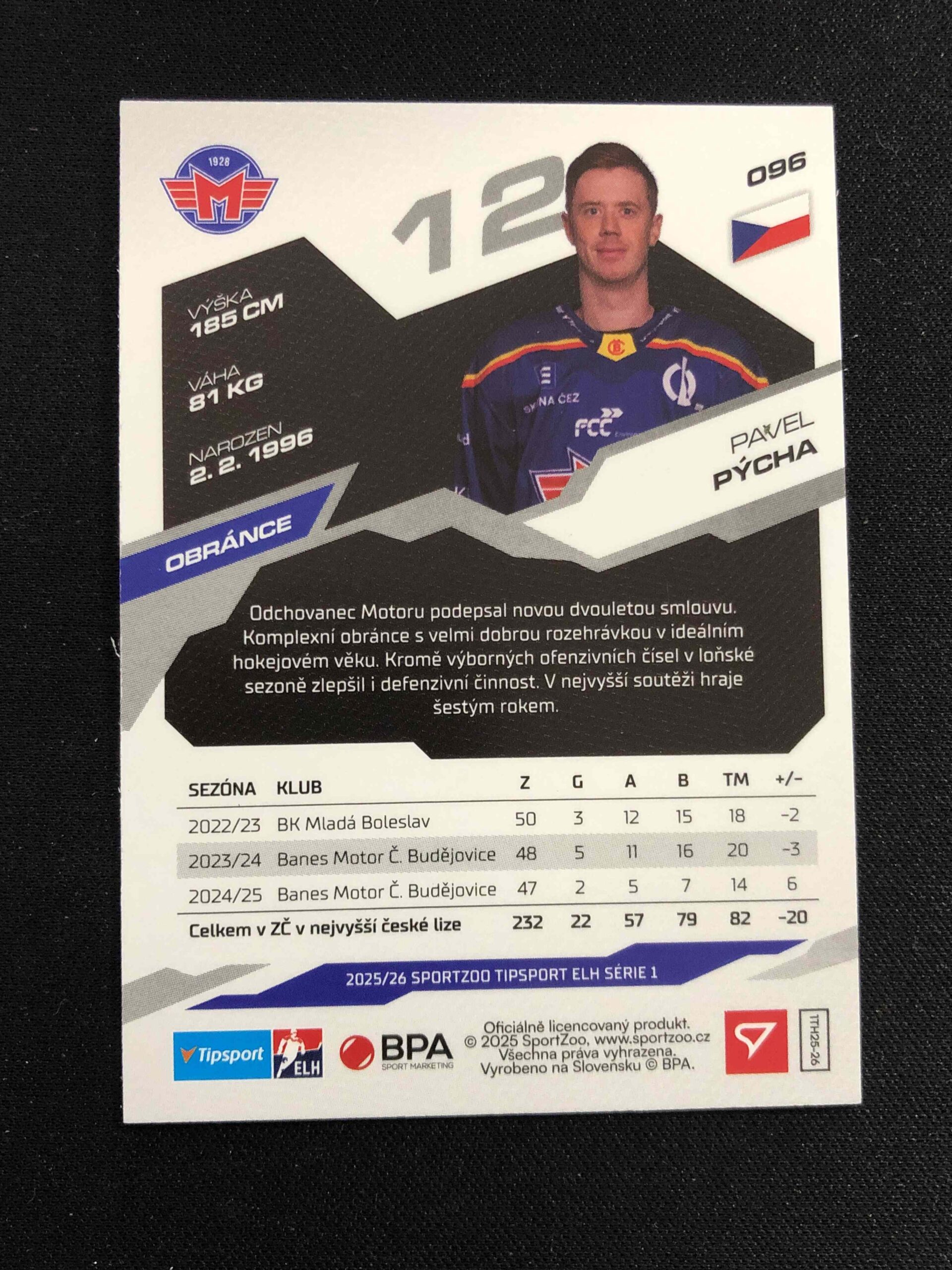 Sběratelská karta 2025/2026 Sportzoo Serie 1 Azure Blue 96 Pavel Pýcha Paralel