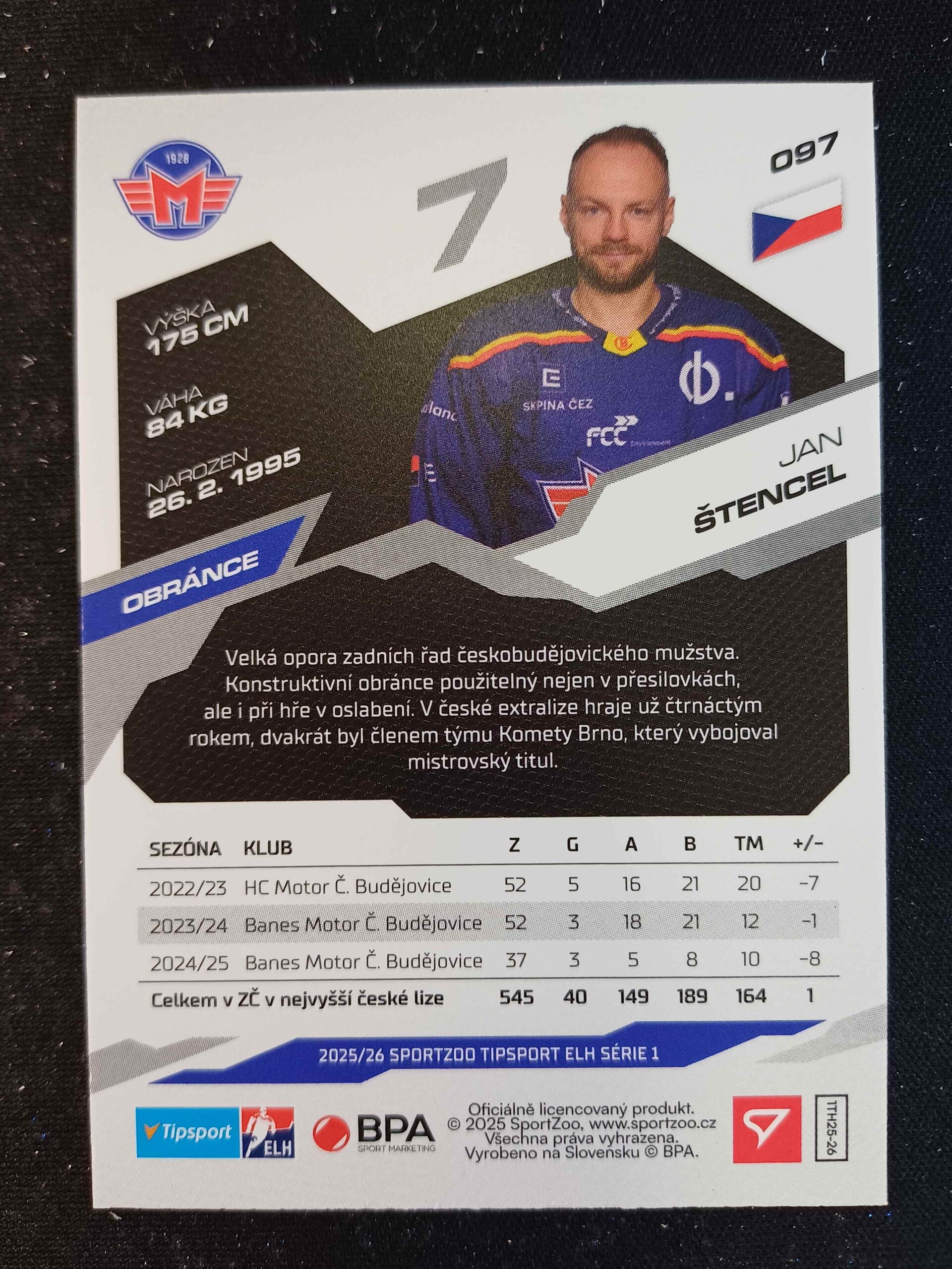 Sběratelská karta 2025/2026 Sportzoo Serie 1 Azure Blue 97 Jan Štencel Paralel