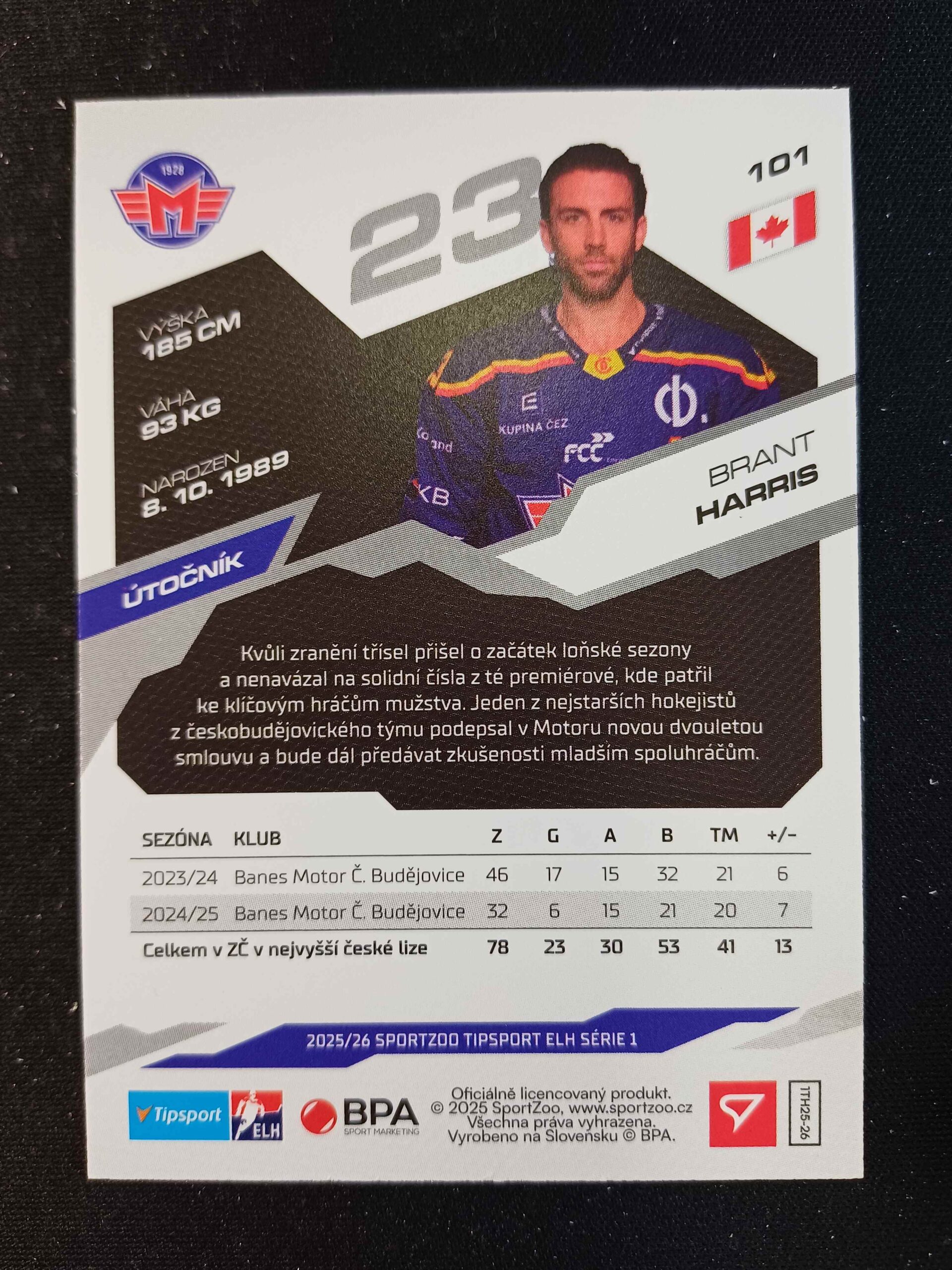 Sběratelská karta 2025/2026 Sportzoo Serie 1 Base 101 Brant Harris