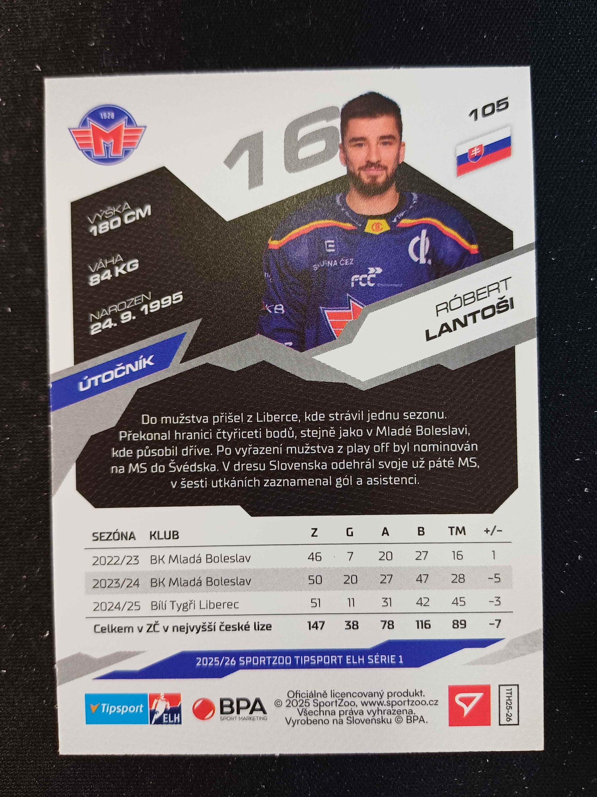 Sběratelská karta 2025/2026 Sportzoo Serie 1 Base 105 Róbert Lantoši