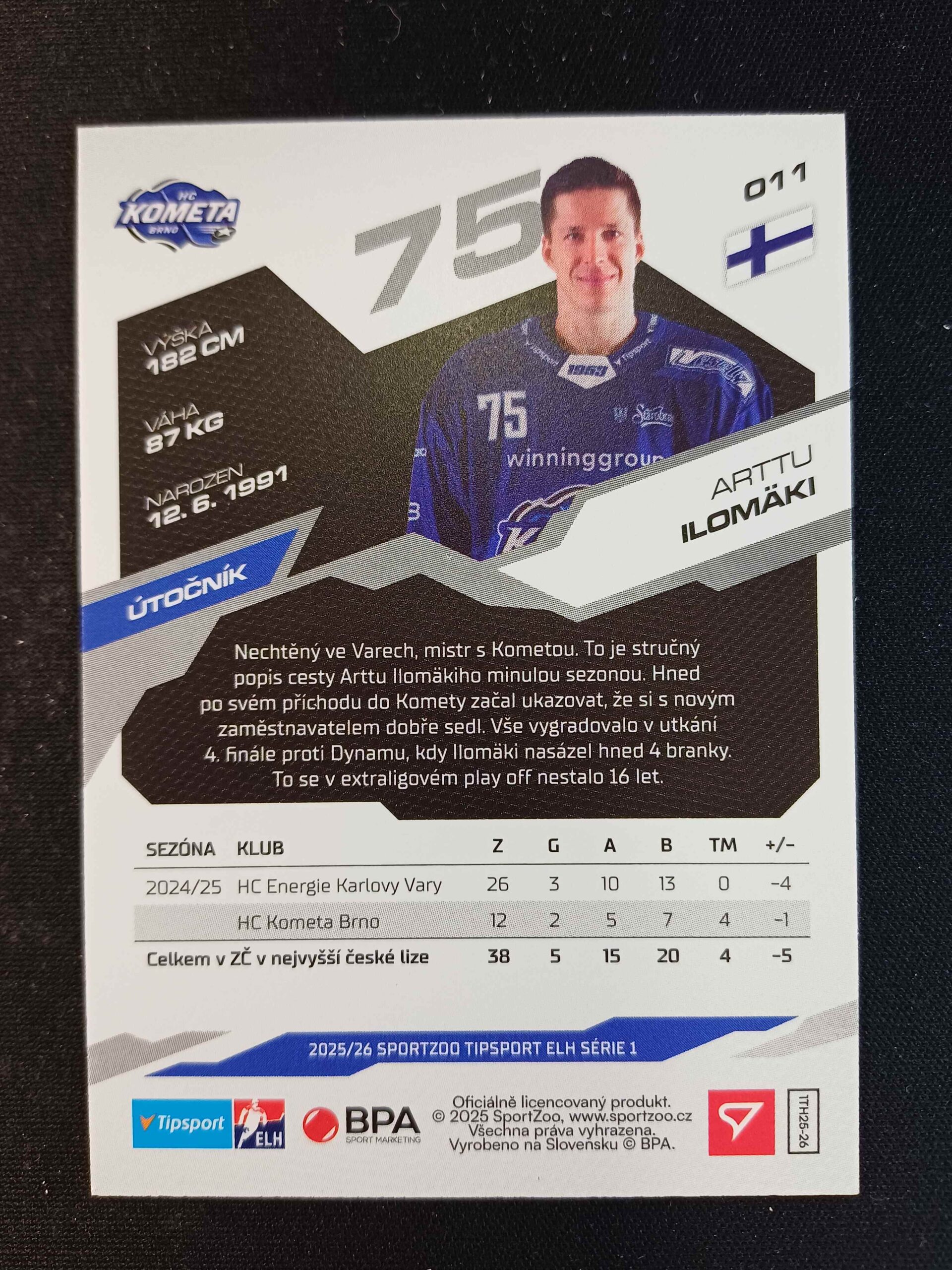Sběratelská karta 2025/2026 Sportzoo Serie 1 Base 11 Arttu Ilomäki