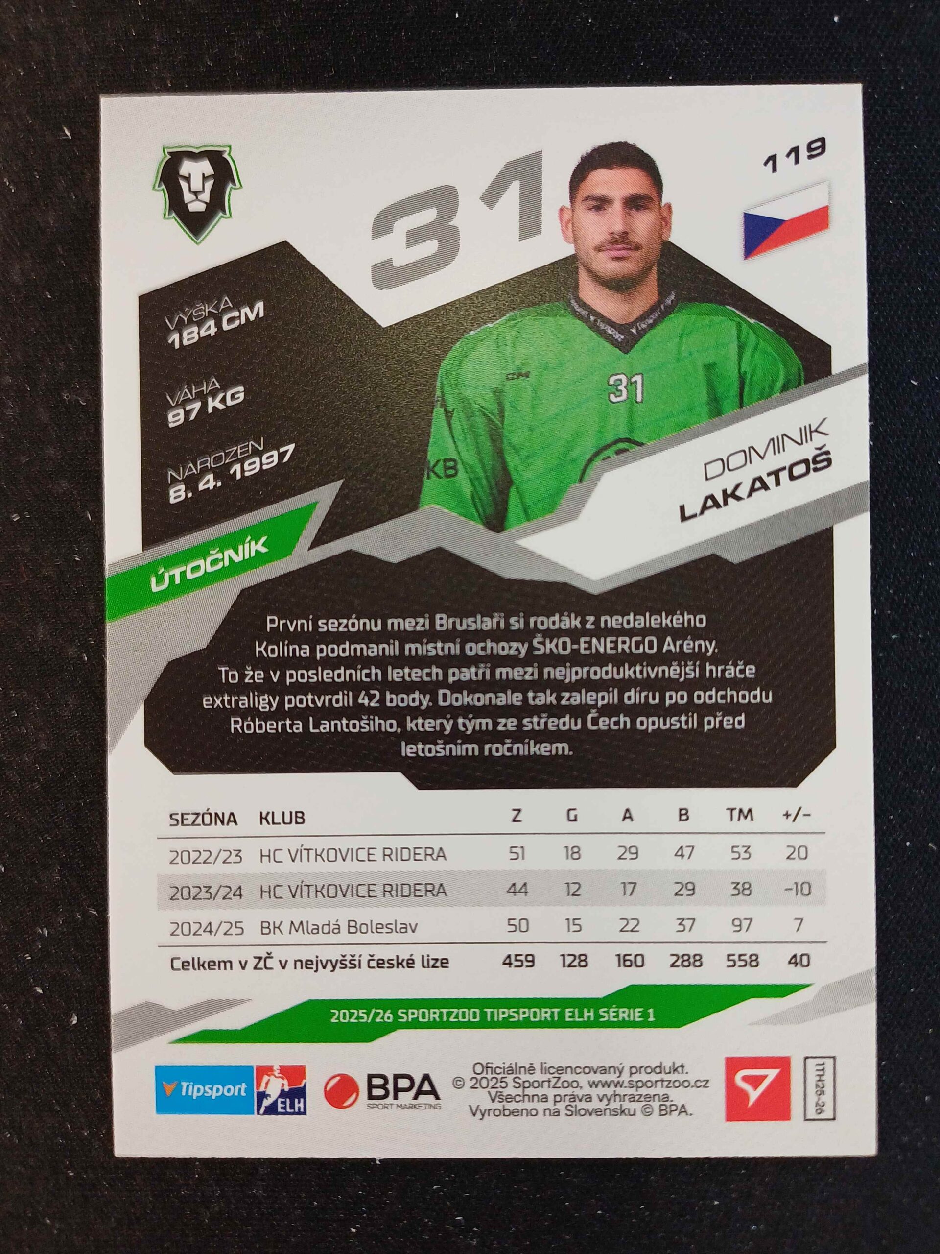 Sběratelská karta 2025/2026 Sportzoo Serie 1 Base 119 Dominik Lakatoš