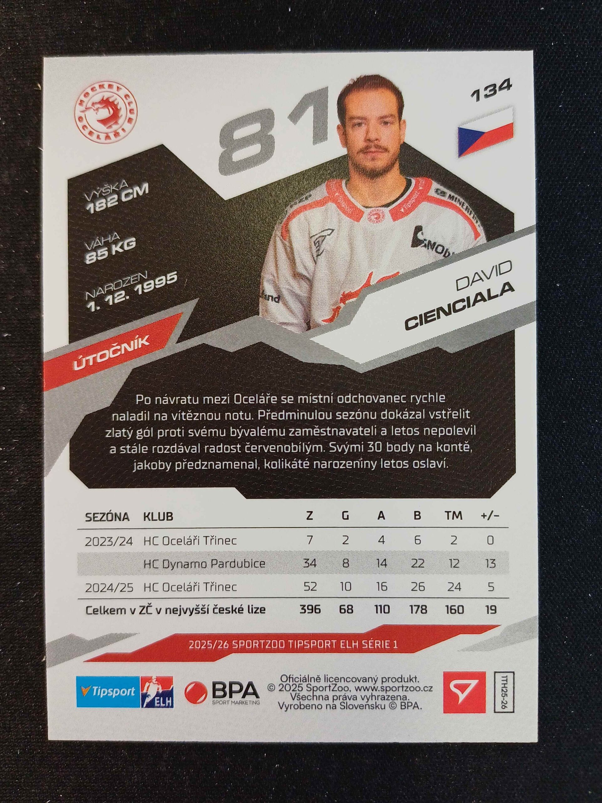 Sběratelská karta 2025/2026 Sportzoo Serie 1 Base 134 David Cienciala