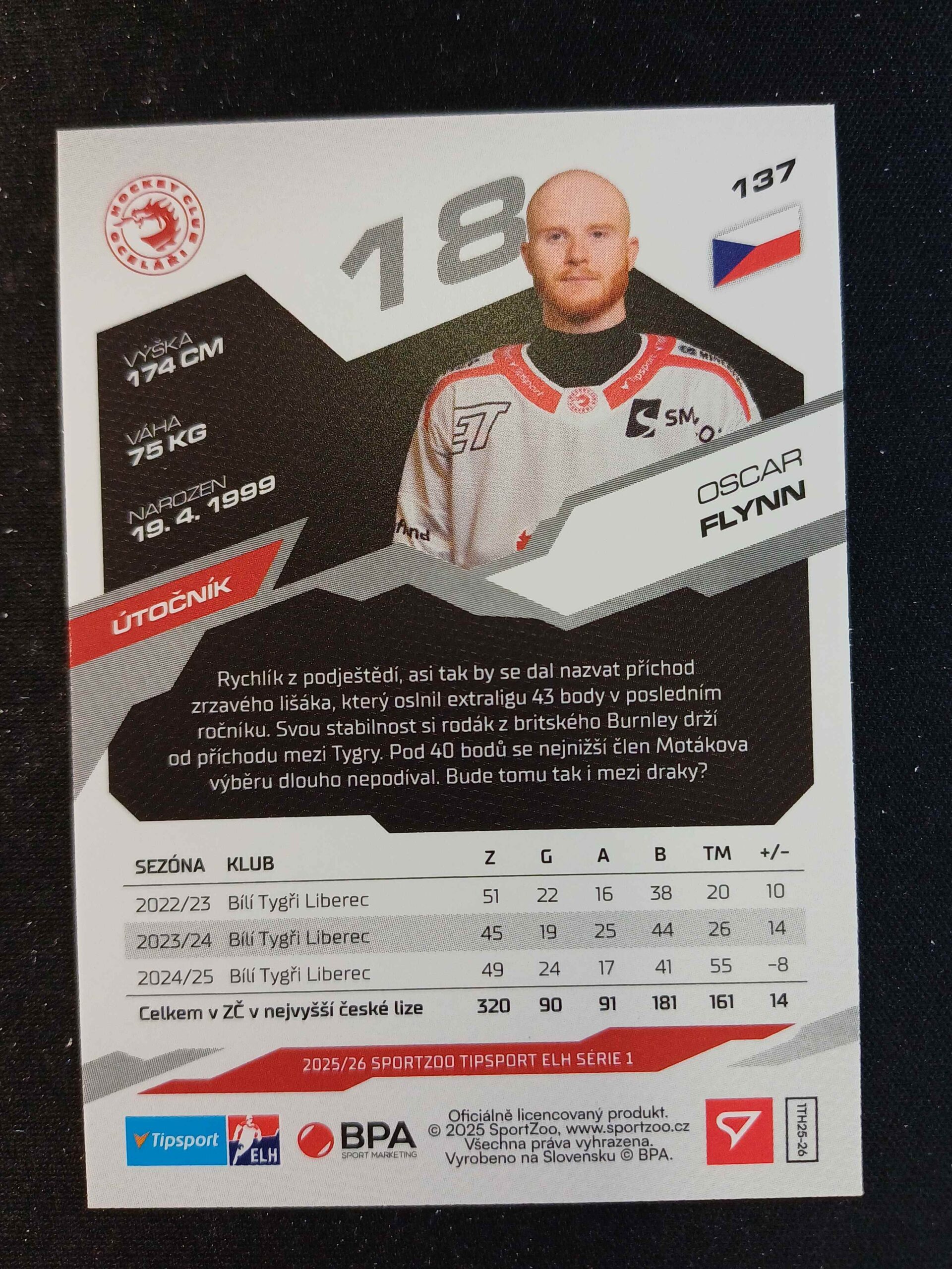 Sběratelská karta 2025/2026 Sportzoo Serie 1 Base 137 Oscar Flynn