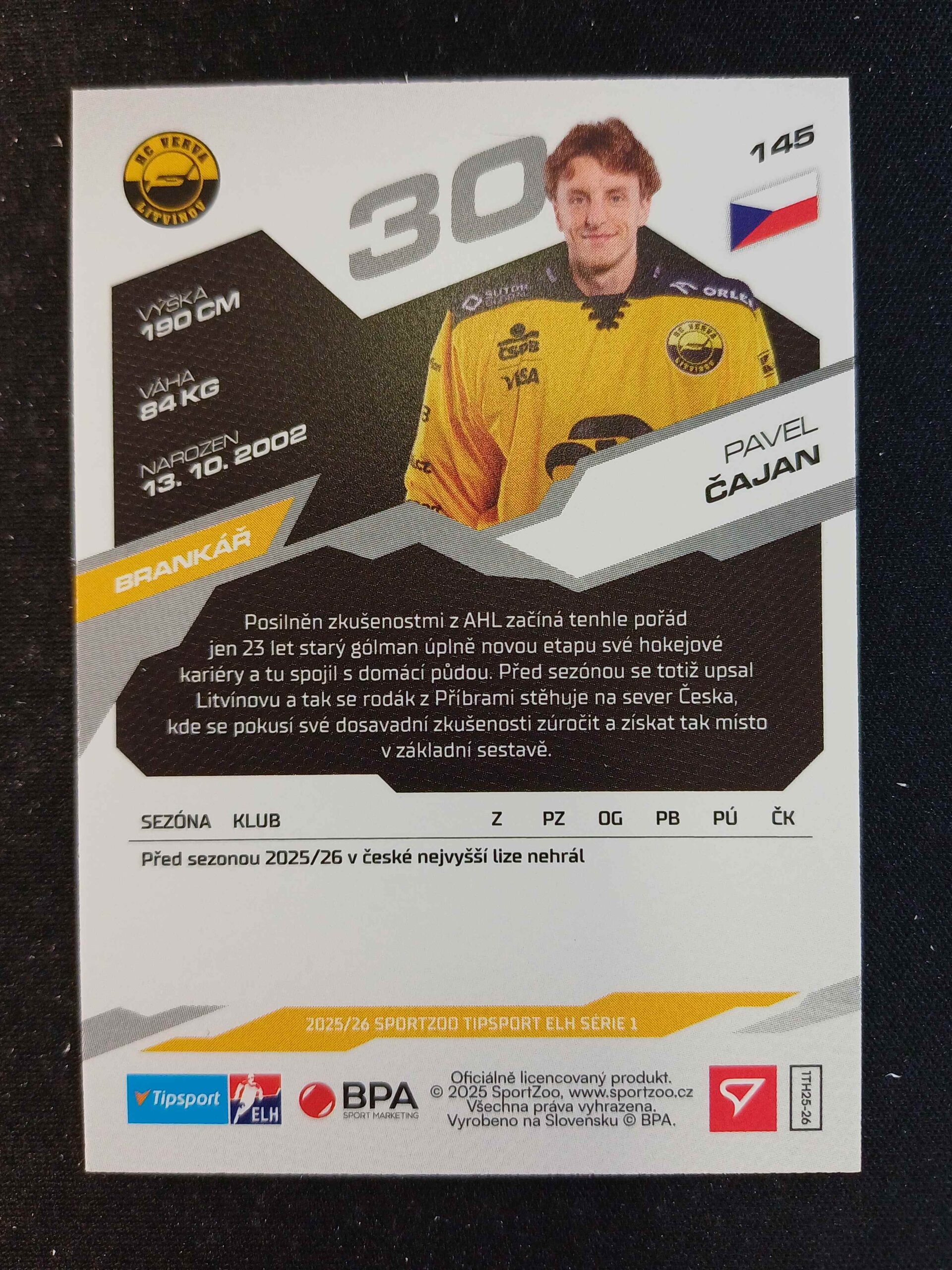 Sběratelská karta 2025/2026 Sportzoo Serie 1 Base 145 Pavel Čajan