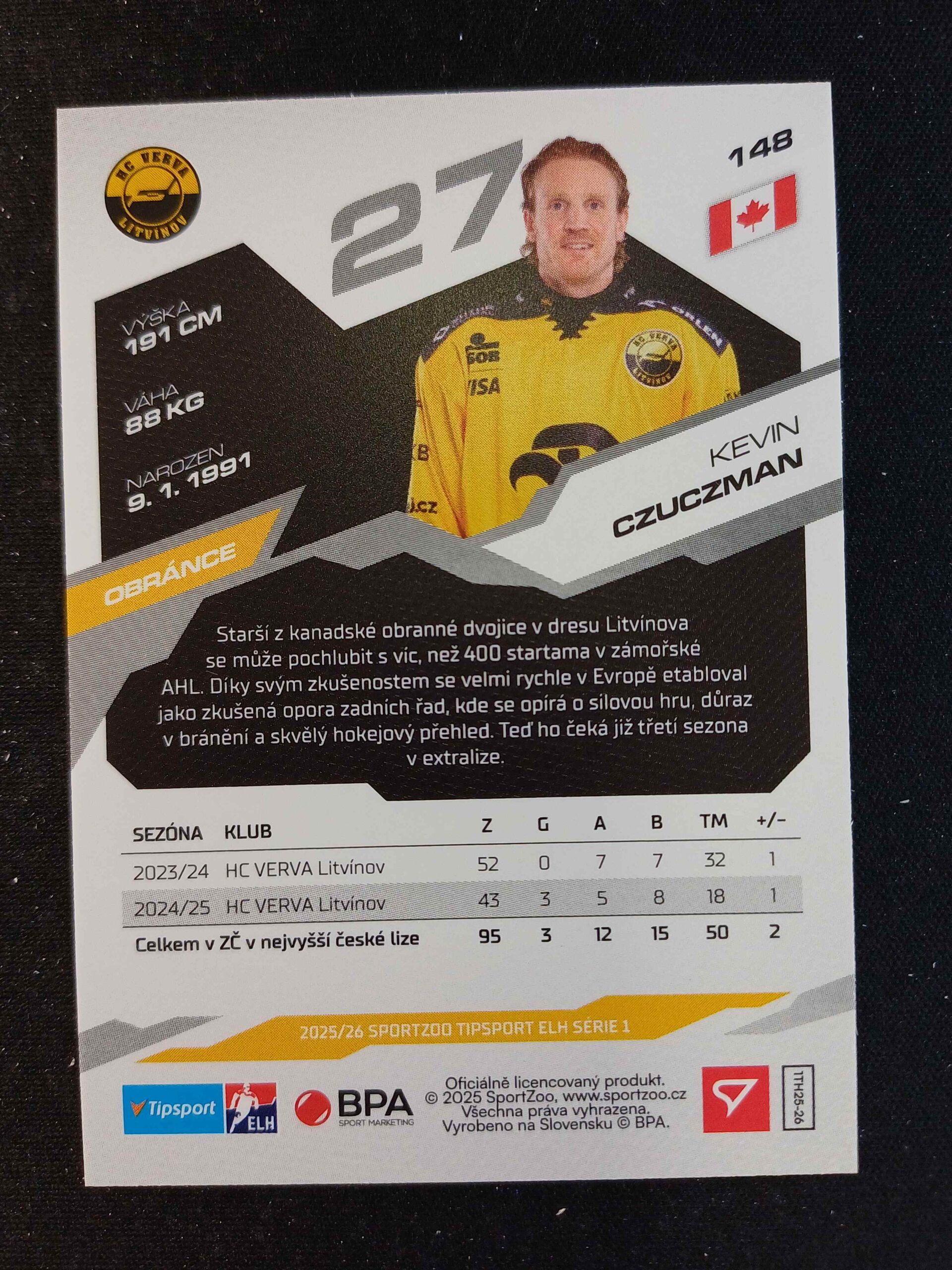 Sběratelská karta 2025/2026 Sportzoo Serie 1 Base 148 Kevin Czuczman