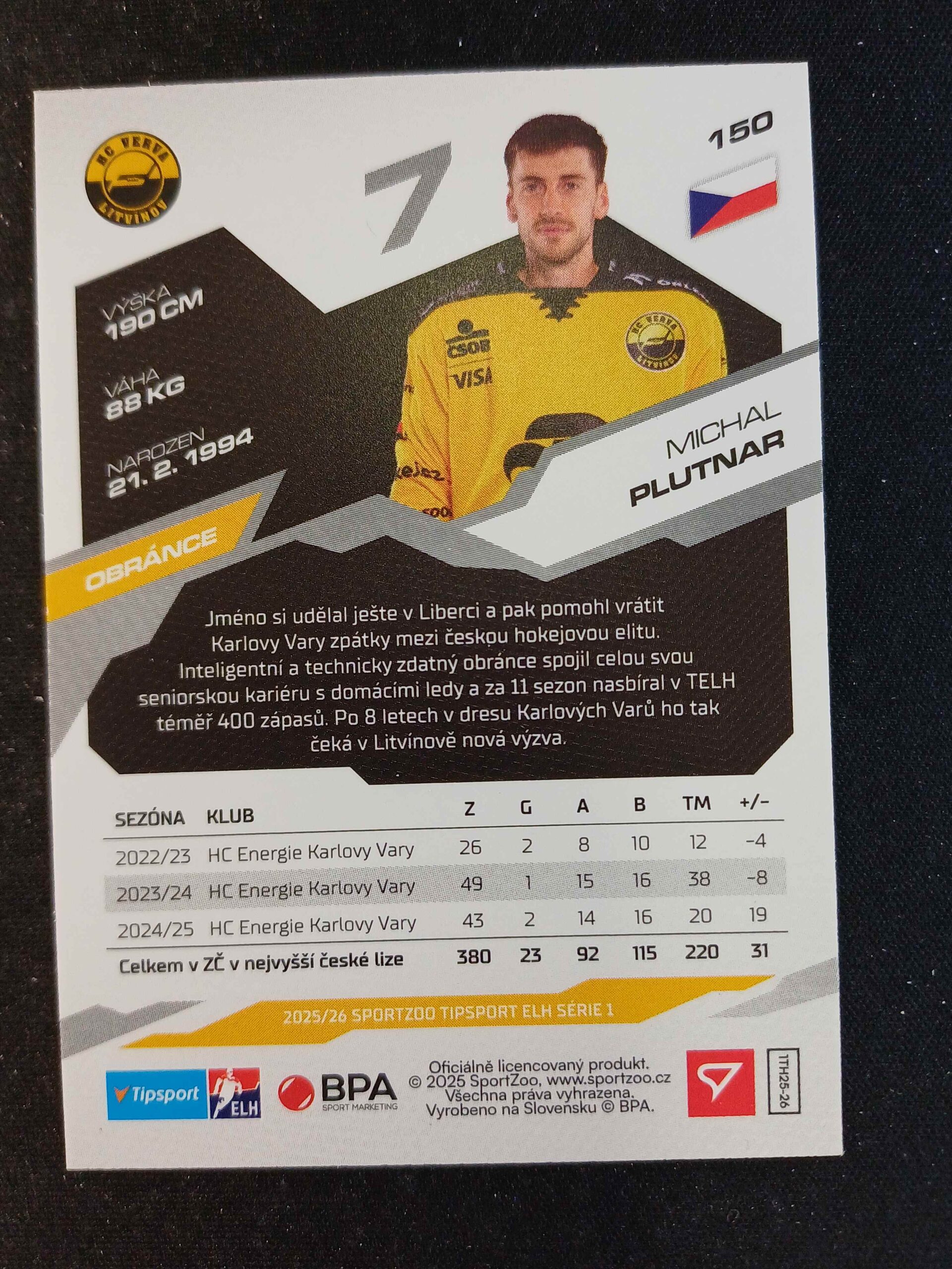 Sběratelská karta 2025/2026 Sportzoo Serie 1 Base 150 Michal Plutnar