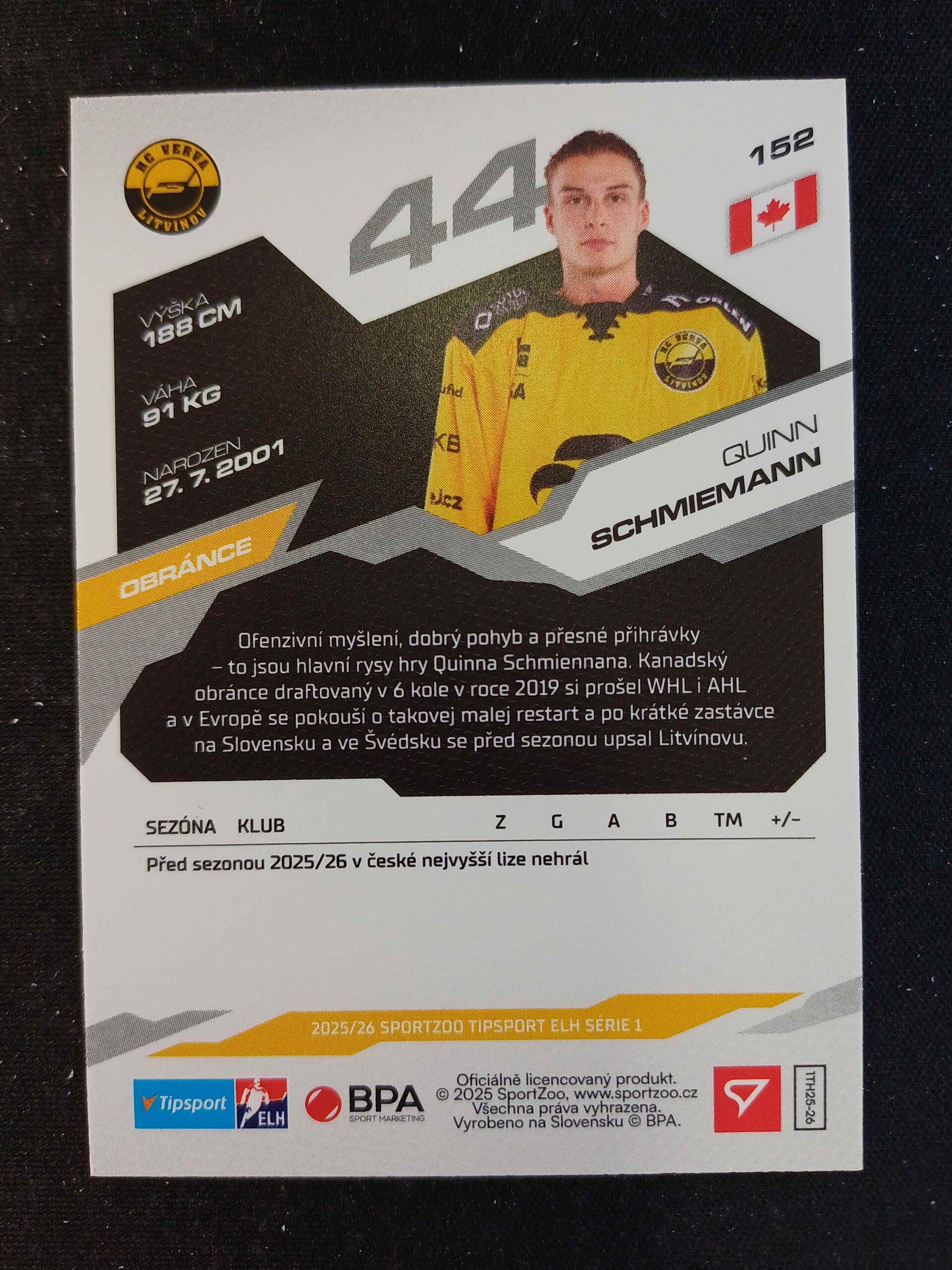Sběratelská karta 2025/2026 Sportzoo Serie 1 Base 152 Quinn Schmiemann