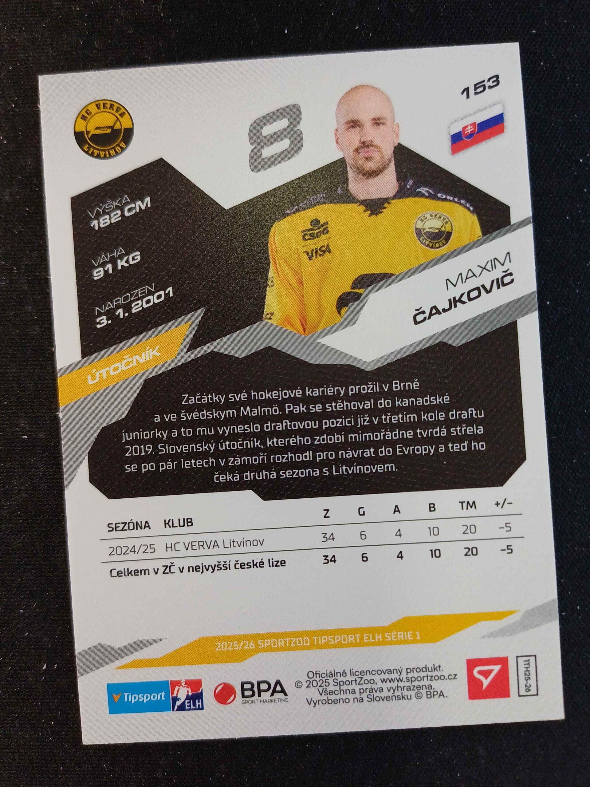 Sběratelská karta 2025/2026 Sportzoo Serie 1 Base 153 Maxim Čajkovič