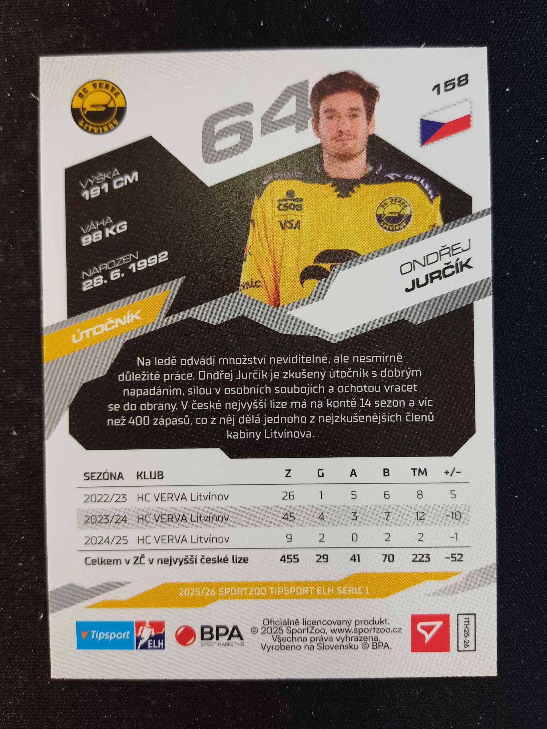 Sběratelská karta 2025/2026 Sportzoo Serie 1 Base 158 Ondřej Jurčík
