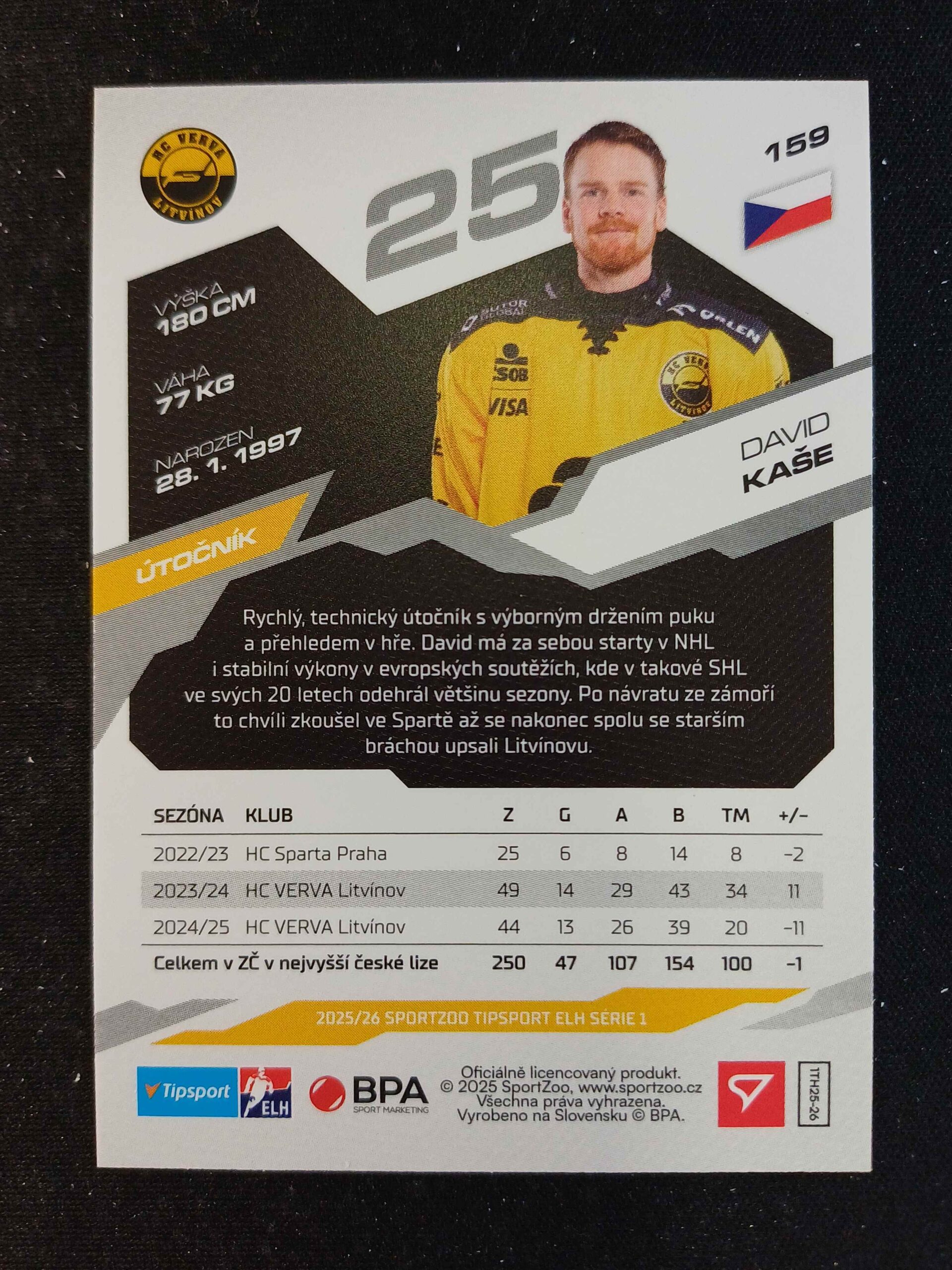 Sběratelská karta 2025/2026 Sportzoo Serie 1 Base 159 David Kaše