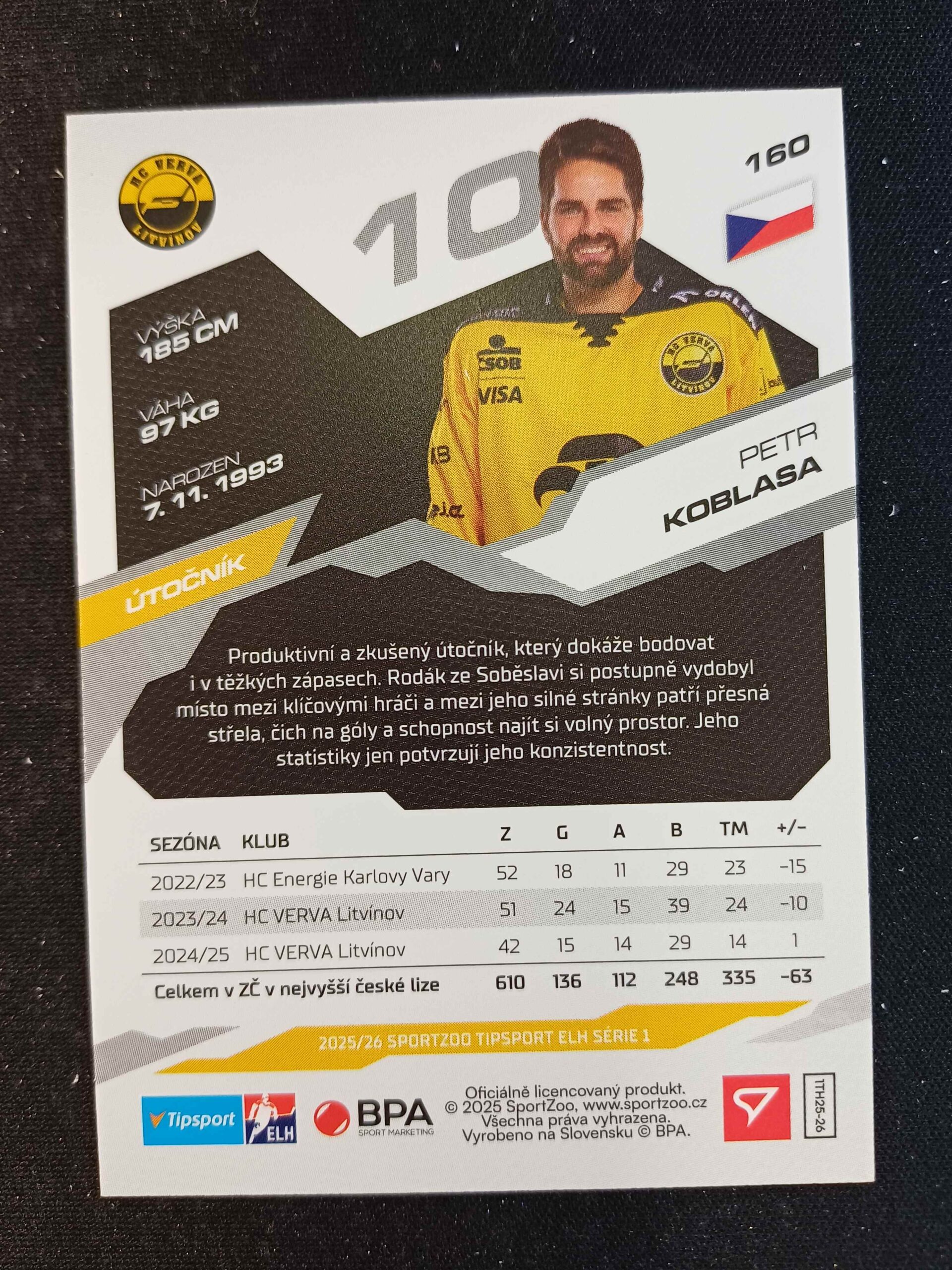Sběratelská karta 2025/2026 Sportzoo Serie 1 Base 160 Petr Koblasa