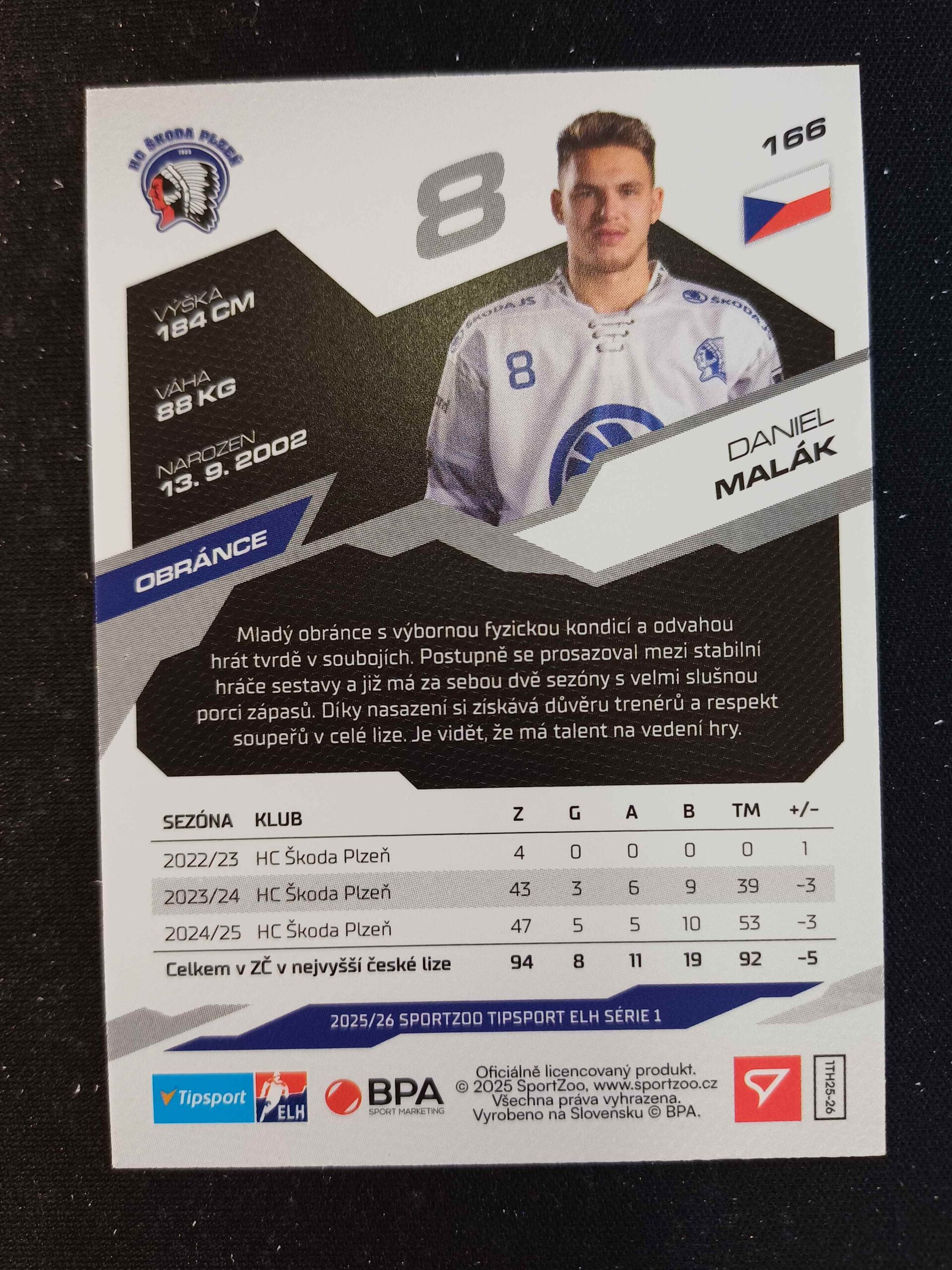 Sběratelská karta 2025/2026 Sportzoo Serie 1 Base 166 Daniel Malák