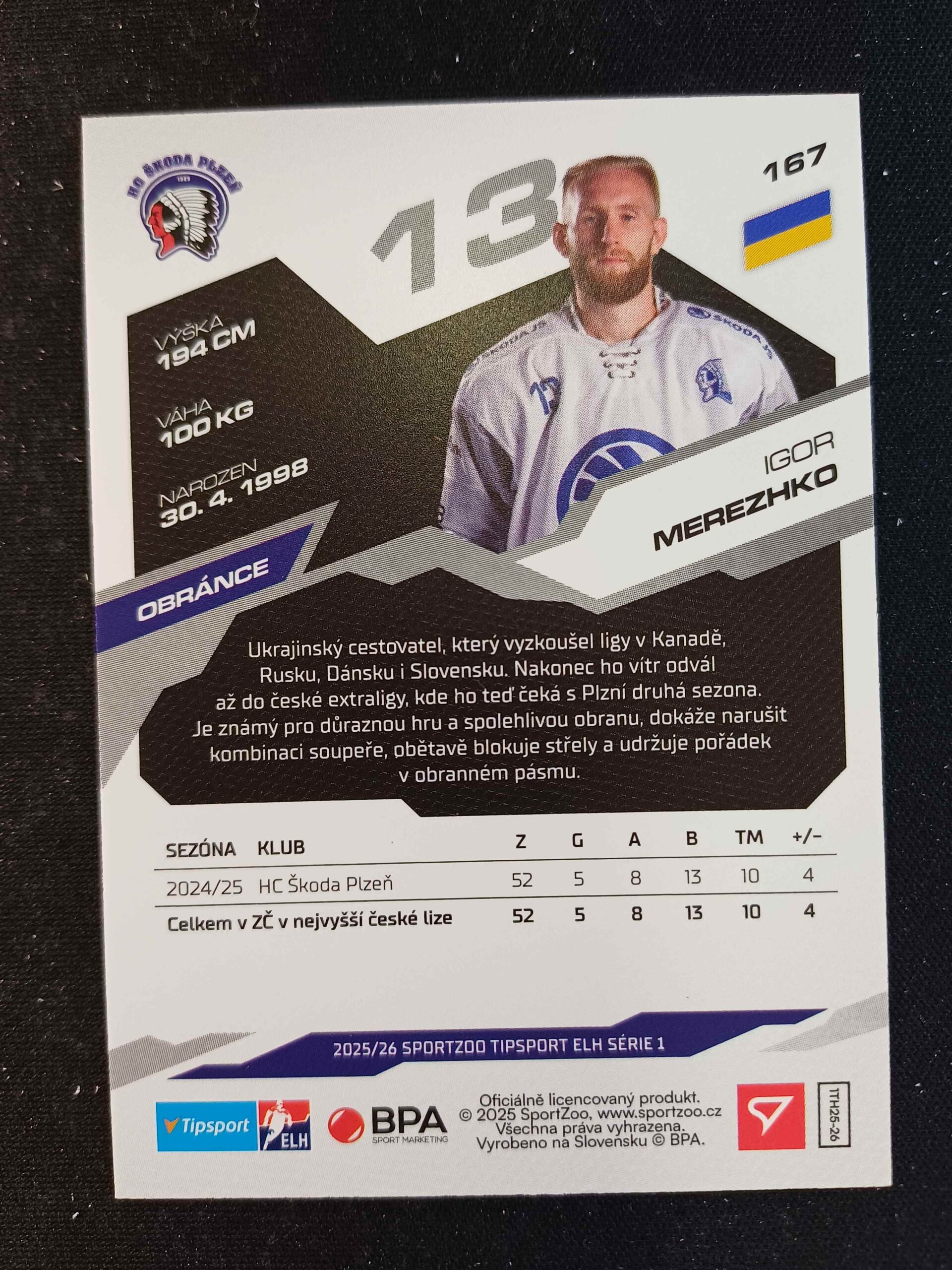 Sběratelská karta 2025/2026 Sportzoo Serie 1 Base 167 Igor Merezhko