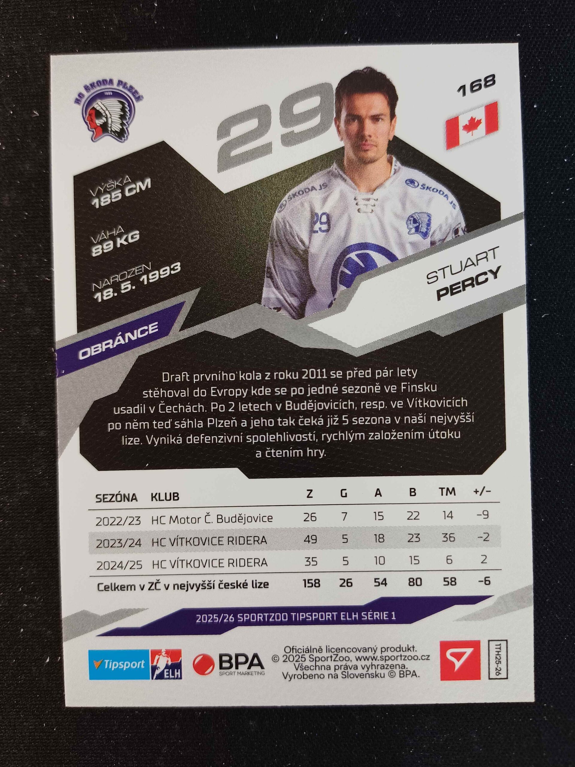 Sběratelská karta 2025/2026 Sportzoo Serie 1 Base 168 Stuart Percy